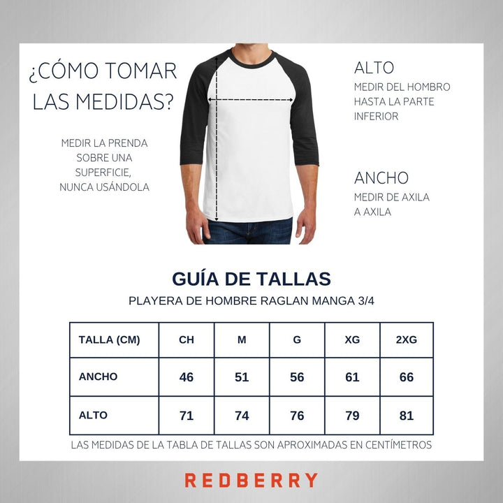 - ORIGINALIDAD Y SOSTENIBILIDAD: Playera de hombre raglán manga 3/4. Producto con un diseño original impreso con tecnología DTG (directo a la prenda) tacto cero. Se utilizan tintas ecológicas sin contaminantes que se adhieren a las fibras de la ropa, garantizando calidad, colores vivos e imagen de larga duración en la camiseta sin comprometer el planeta.