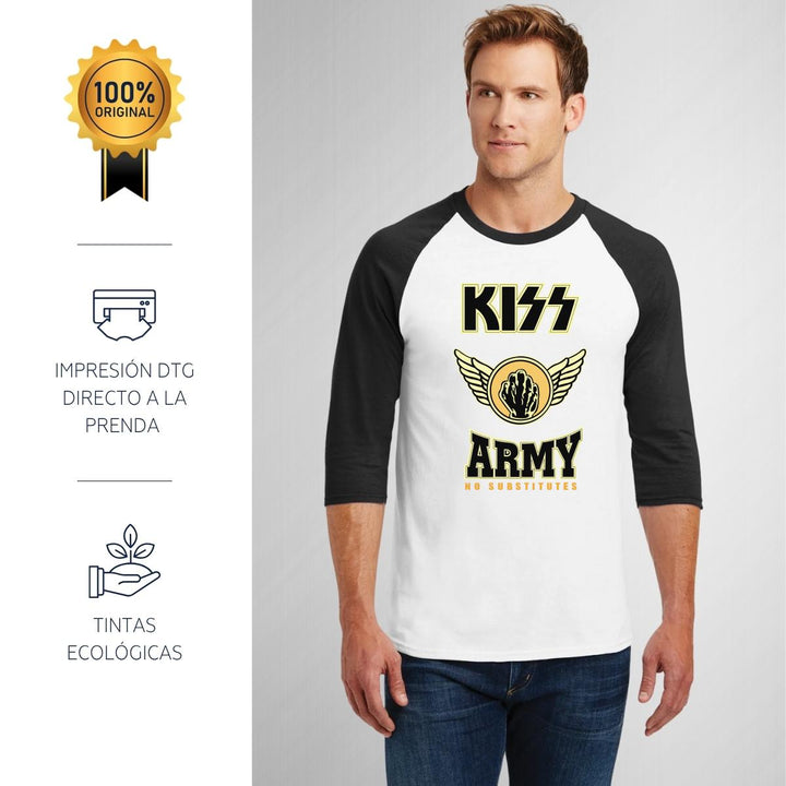 Playera Raglán Manga 3/4 Hombre Rock Kiss Army 000930
