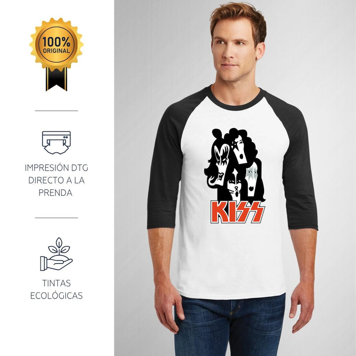 Playera Raglán Manga 3/4 Hombre Rock Kiss Ilustración 000928