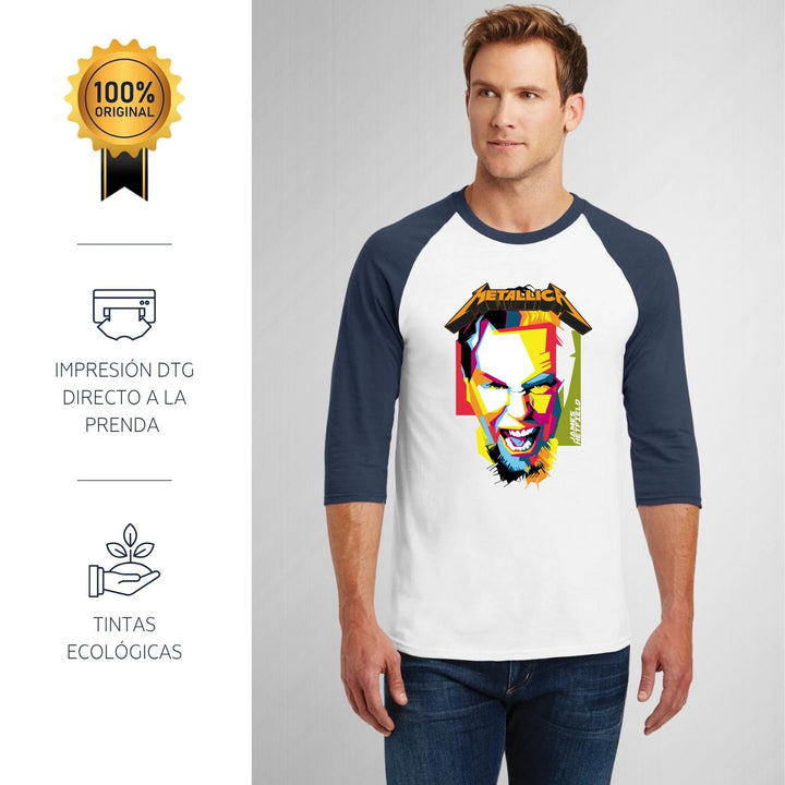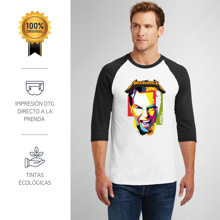 Playera Raglán Manga 3/4 Hombre Rock Metallica James 000922