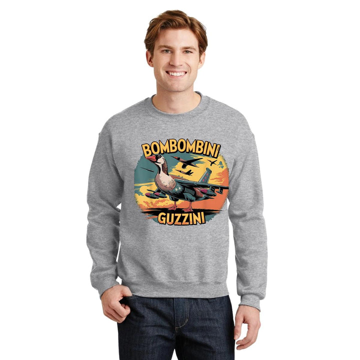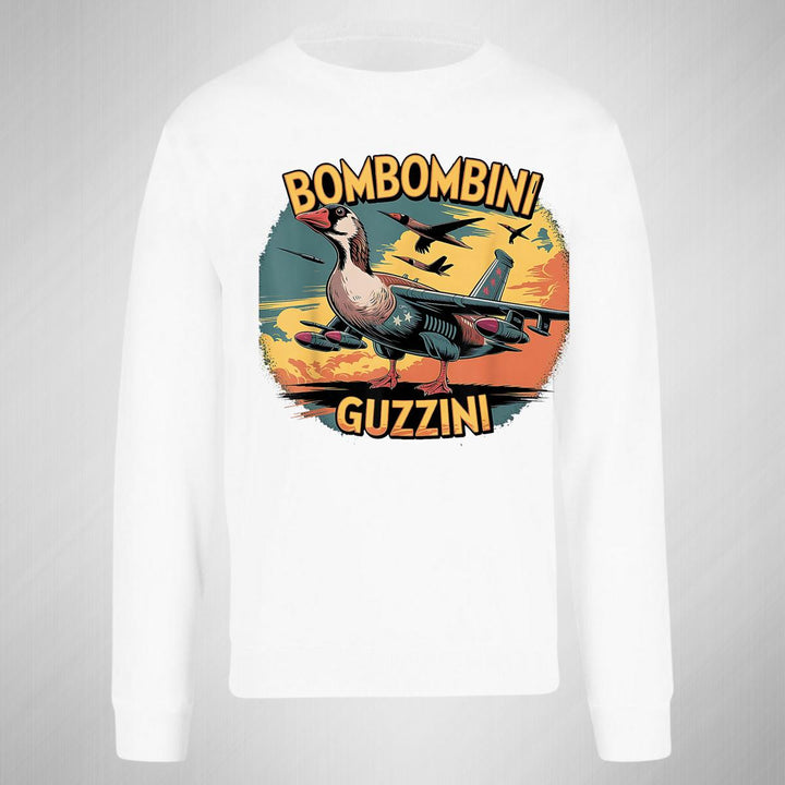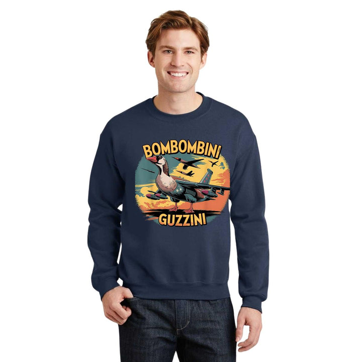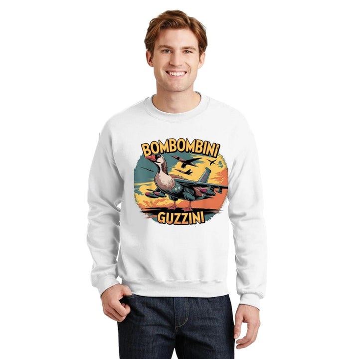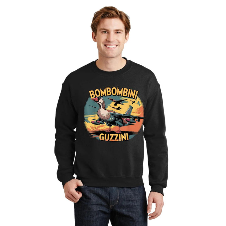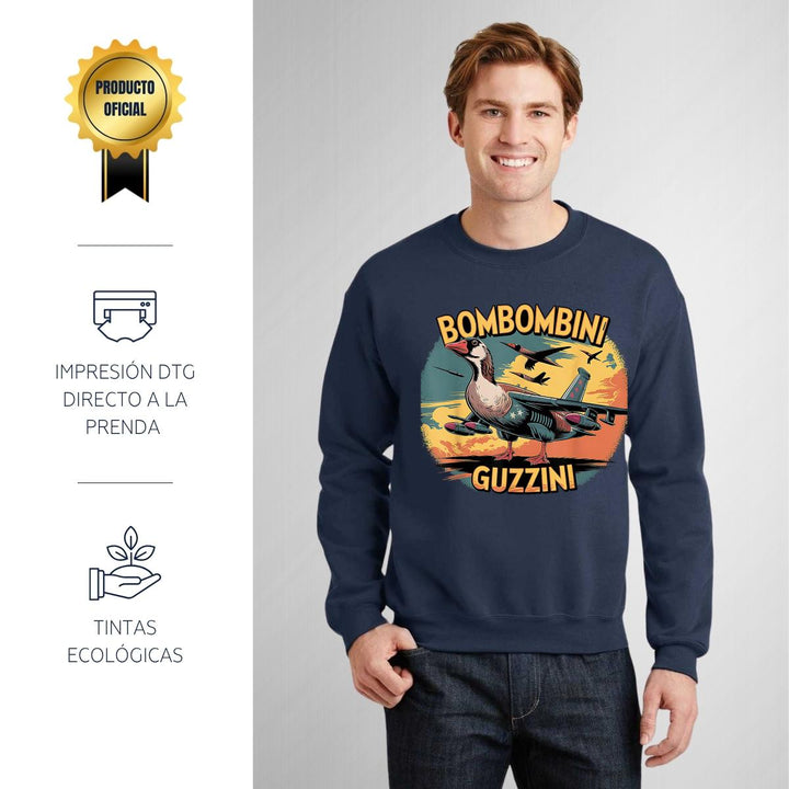 Sudadera de adulto cuello redondo sin gorro o capucha, para hombre nueva, diseño Brainrot Bombombini Gusini original impreso con tecnología DTG (directo a la prenda) tacto cero, uso casual o deportiva, 50% algodón y 50% poliéster, estructura sin costura en los costados con ajuste clásico. Colores de sudadera: Negro, Blanco, Azul Marino, Gris.