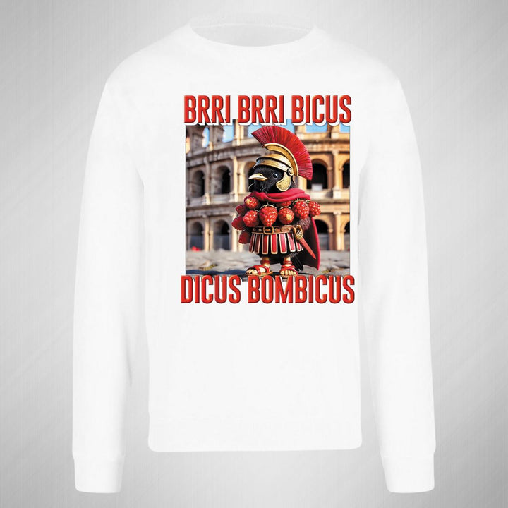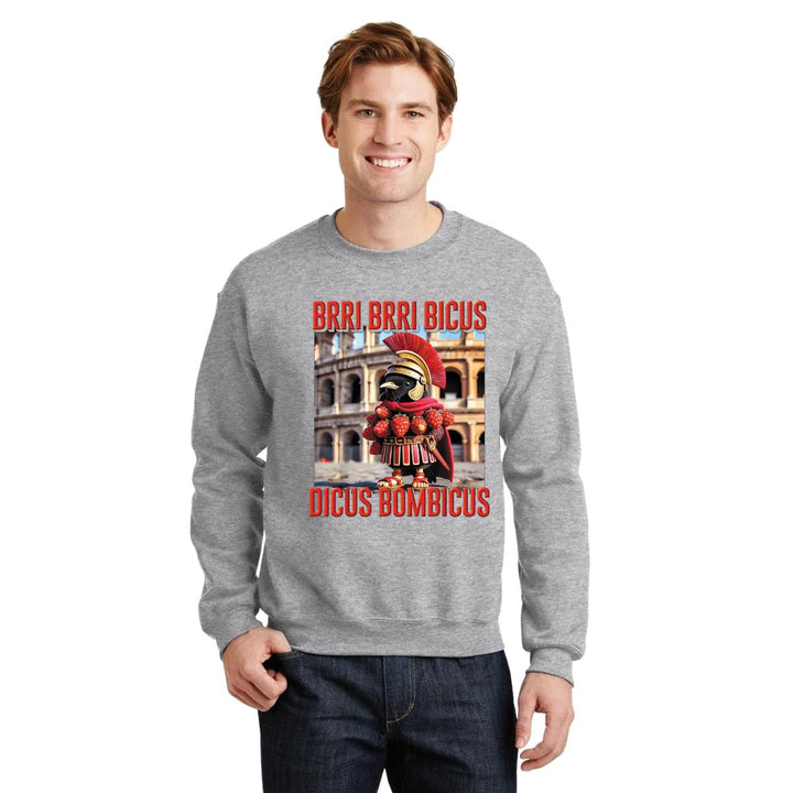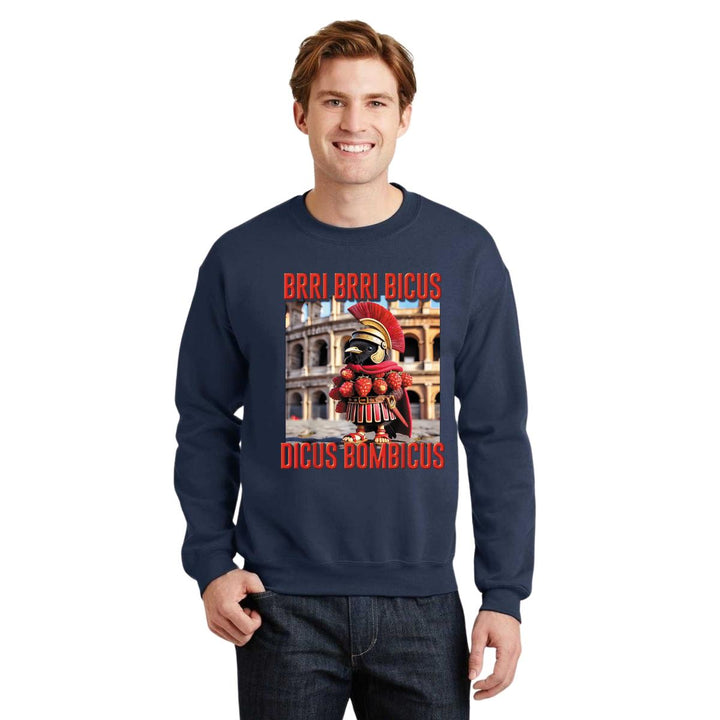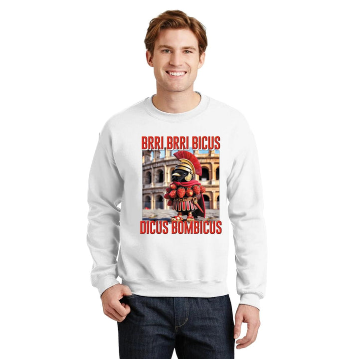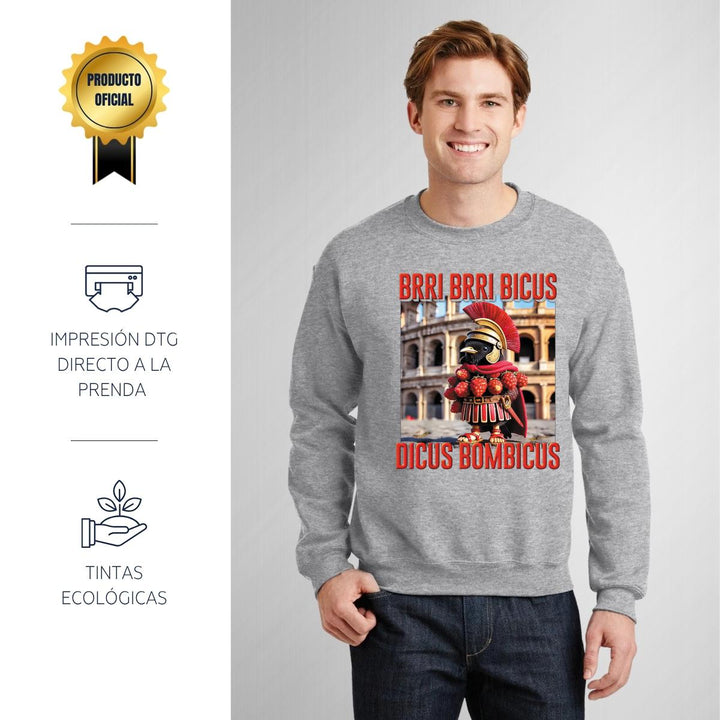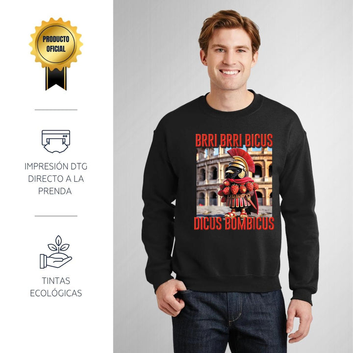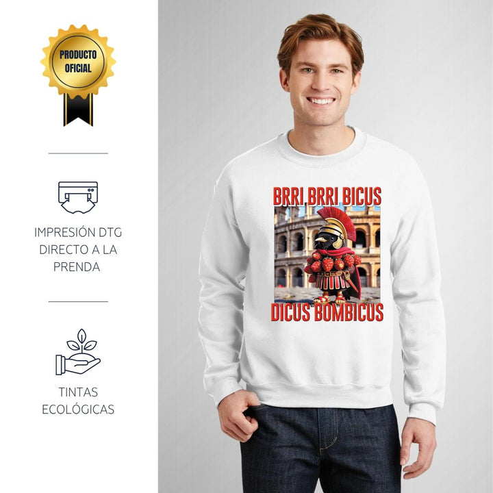 Sudadera de adulto cuello redondo sin gorro o capucha, para hombre nueva, diseño Brainrot Brri Brri Bicus Dicus original impreso con tecnología DTG (directo a la prenda) tacto cero, uso casual o deportiva, 50% algodón y 50% poliéster, estructura sin costura en los costados con ajuste clásico. Colores de sudadera: Negro, Blanco, Azul Marino, Gris.