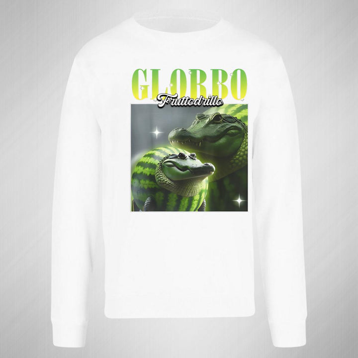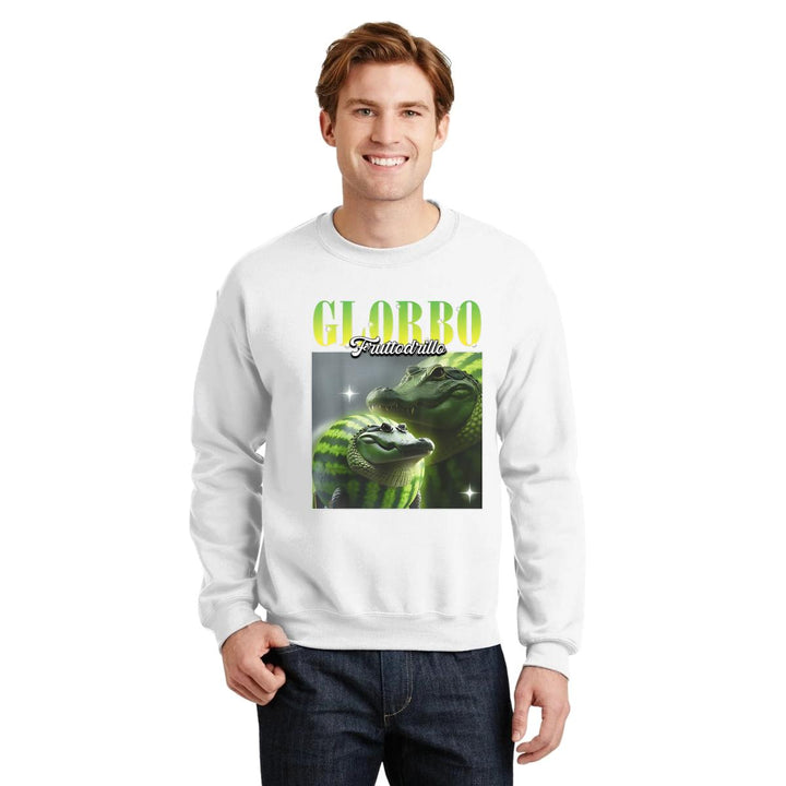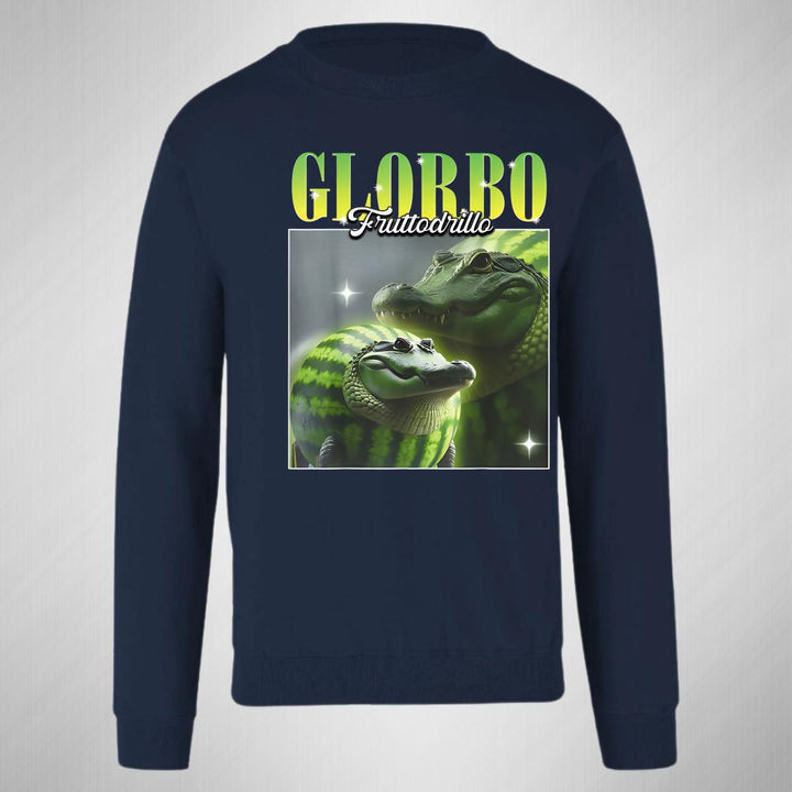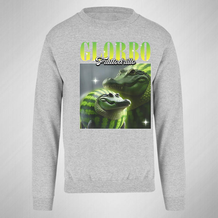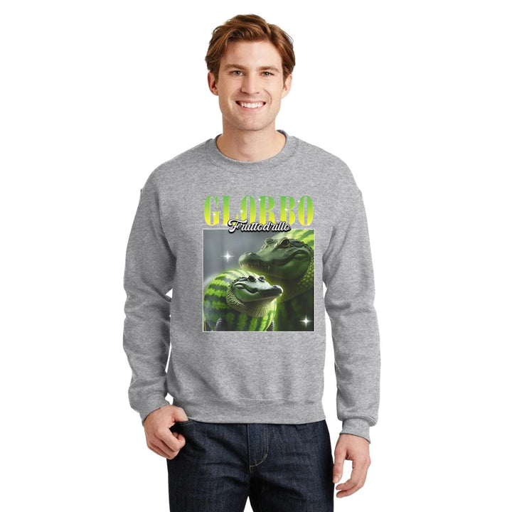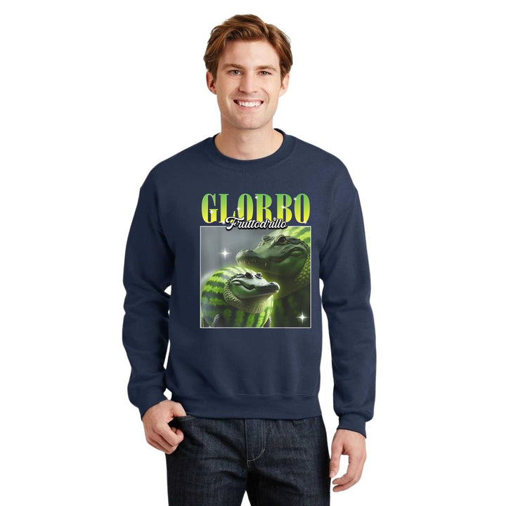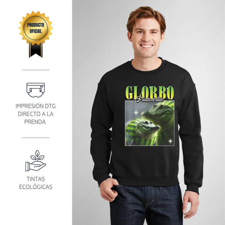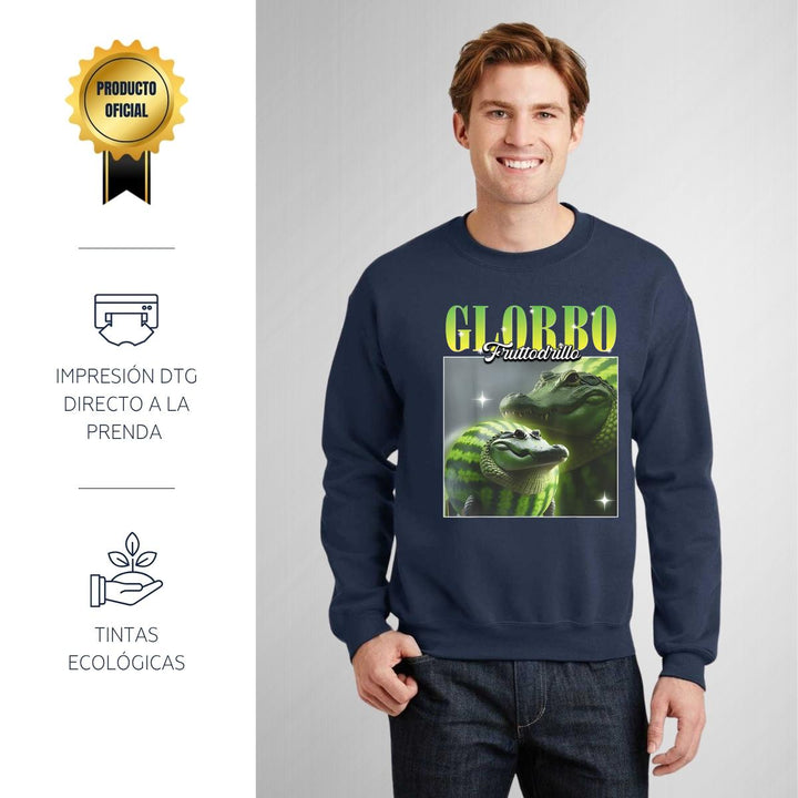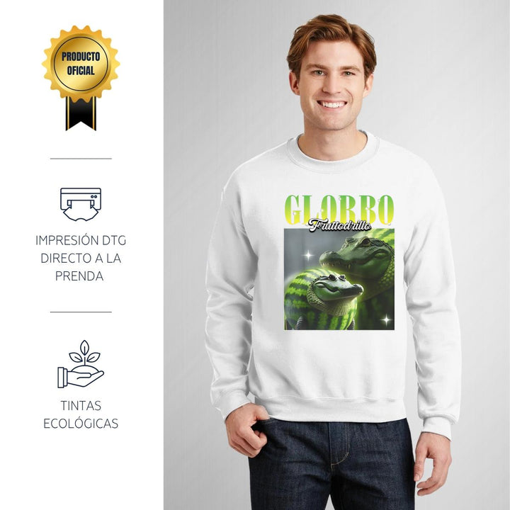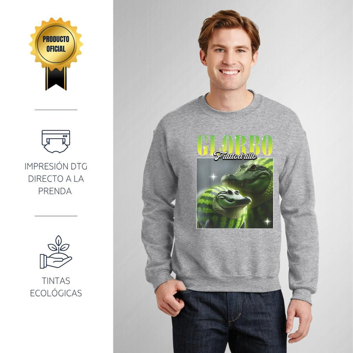 Sudadera de adulto cuello redondo sin gorro o capucha, para hombre nueva, diseño Brainrot Glorbo Fruttodrillo original impreso con tecnología DTG (directo a la prenda) tacto cero, uso casual o deportiva, 50% algodón y 50% poliéster, estructura sin costura en los costados con ajuste clásico. Colores de sudadera: Negro, Blanco, Azul Marino, Gris.