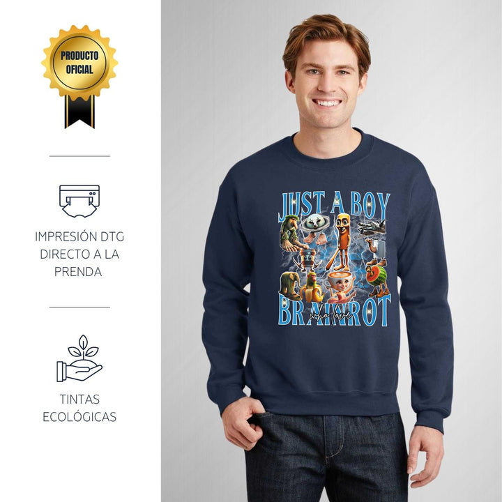 Sudadera de adulto cuello redondo sin gorro o capucha, para hombre nueva, diseño Brainrot Italianos original impreso con tecnología DTG (directo a la prenda) tacto cero, uso casual o deportiva, 50% algodón y 50% poliéster, estructura sin costura en los costados con ajuste clásico. Colores de sudadera: Negro, Blanco, Azul Marino, Gris.