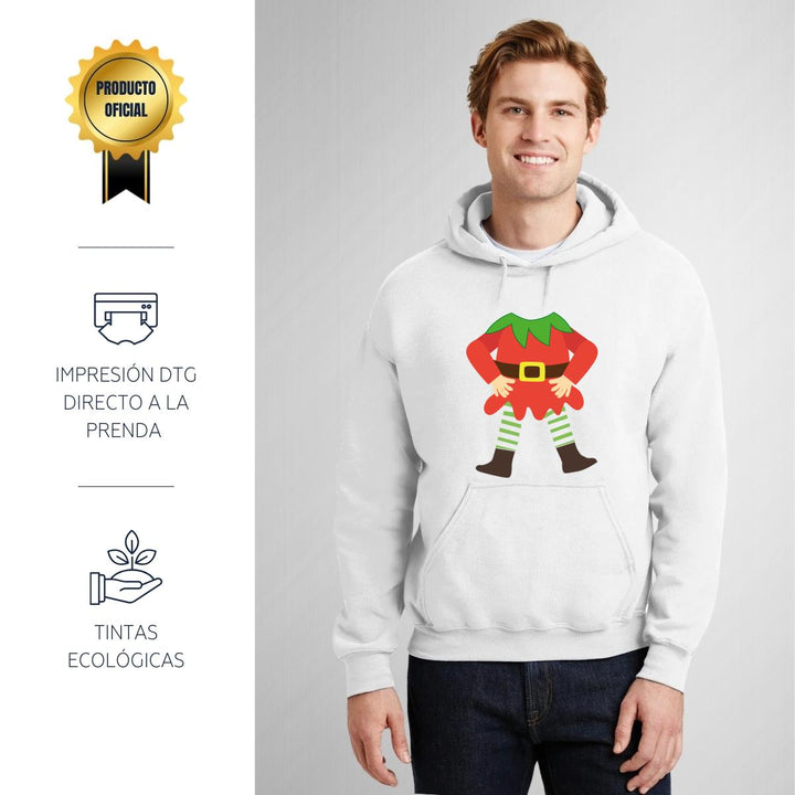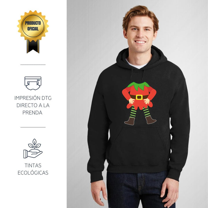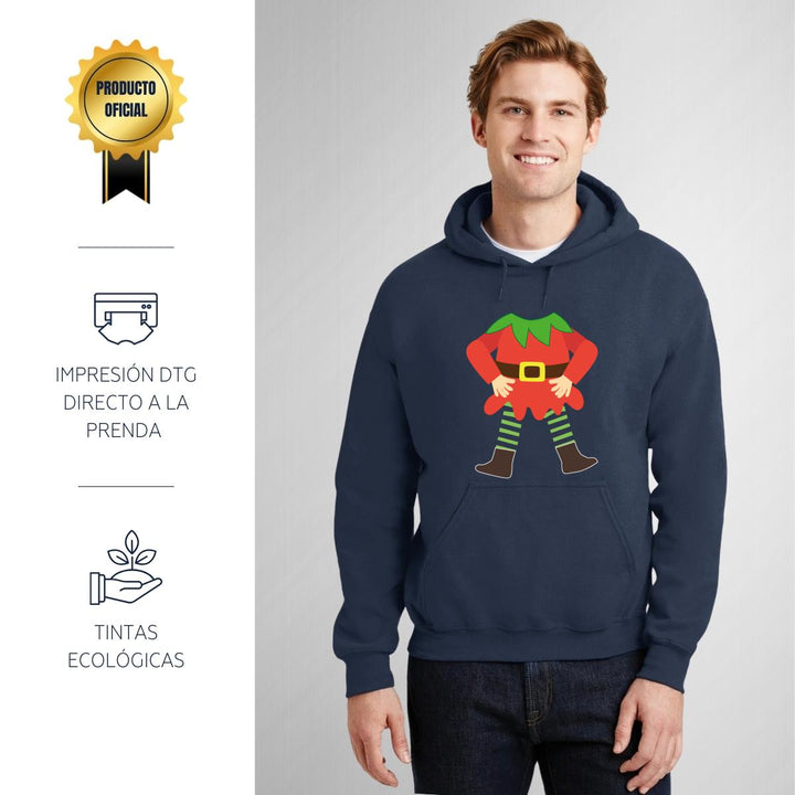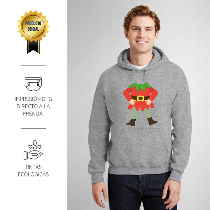 Sudadera hoodie de adulto con gorro o capucha y bolsillo frontal canguro, para hombre nueva, diseño Duende original impreso con tecnología DTG (directo a la prenda) tacto cero, uso casual o deportiva, 50% algodón y 50% poliéster fleece pre encogido, estructura tubular con ajuste clásico. Colores de sudadera: Negro, Blanco, Azul Marino, Gris.