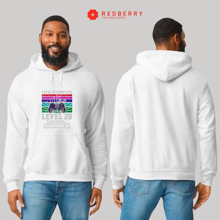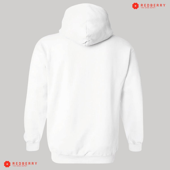 Sudadera hoodie de adulto con gorro o capucha y bolsillo frontal canguro, para Hombre nueva REDBERRY oficial, diseño original, uso casual o deportiva, 50% algodón y 50% poliéster fleece pre encogido, estructura tubular con ajuste clásico. Colores de sudadera: Blanco.