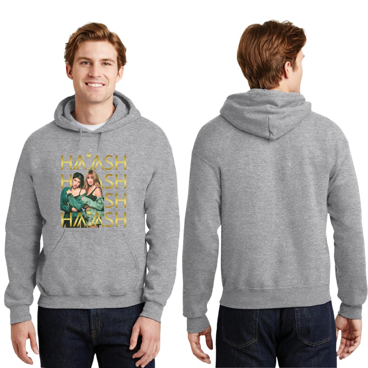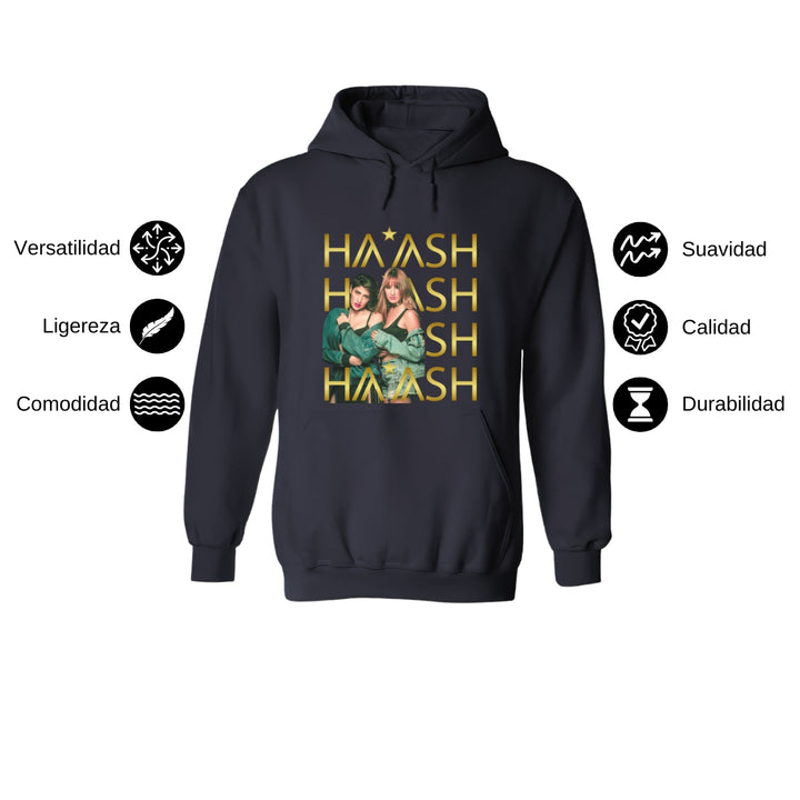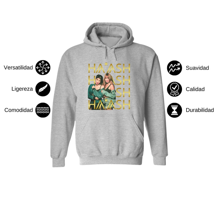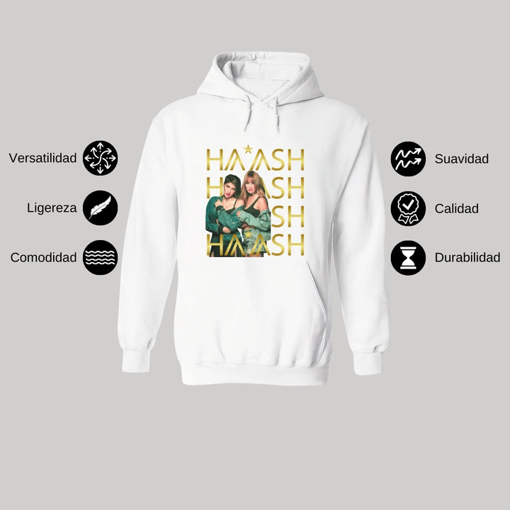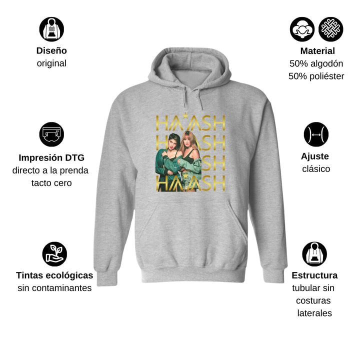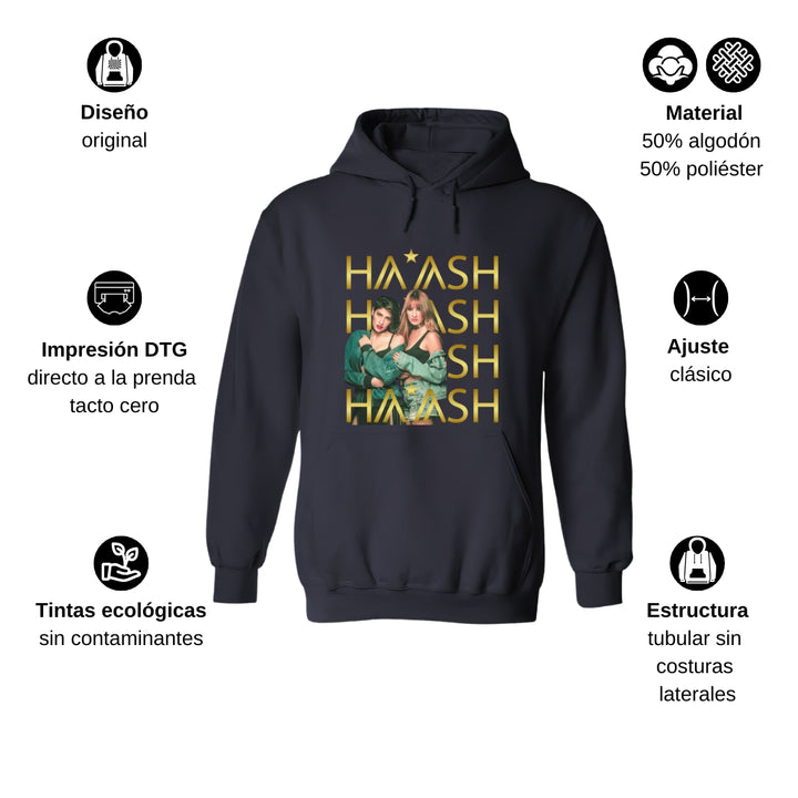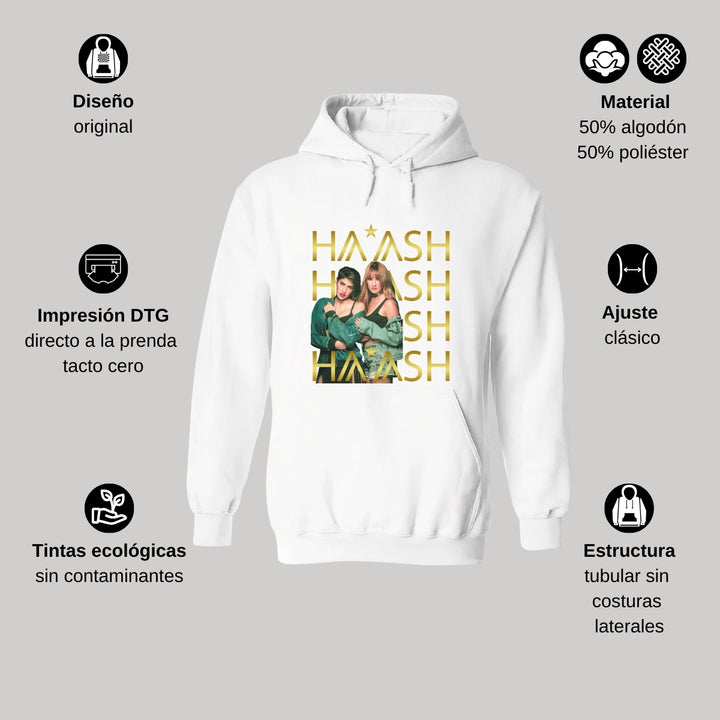 Sudadera hoodie de adulto con gorro o capucha y bolsillo frontal canguro, para hombre nueva, diseño HA-ASH Concierto original impreso con tecnología DTG (directo a la prenda) tacto cero, uso casual o deportiva, 50% algodón y 50% poliéster fleece pre encogido, estructura tubular con ajuste clásico. Colores de sudadera: Negro, Blanco, Azul Marino, Gris.