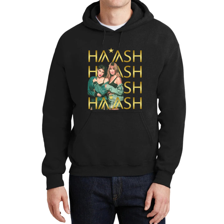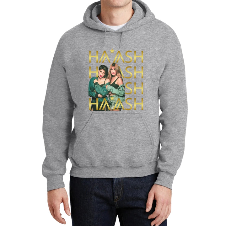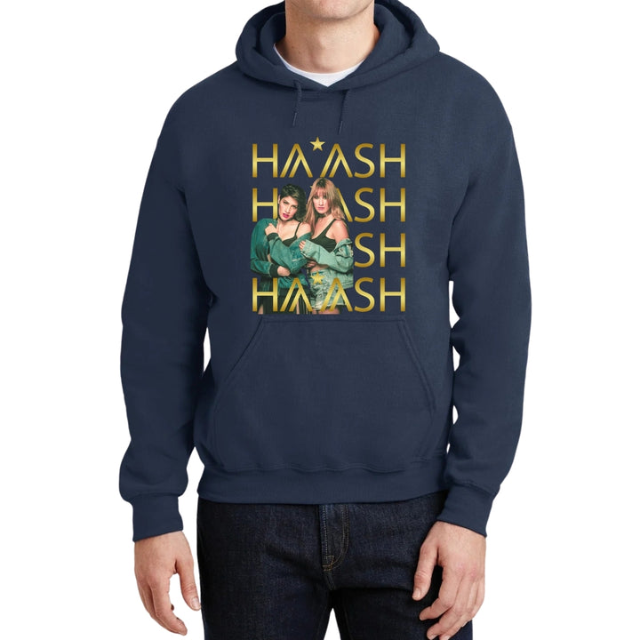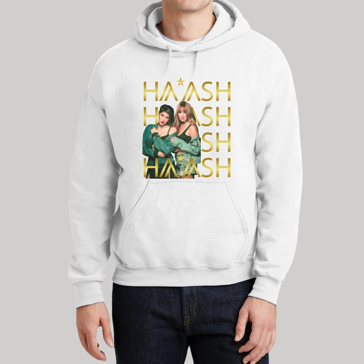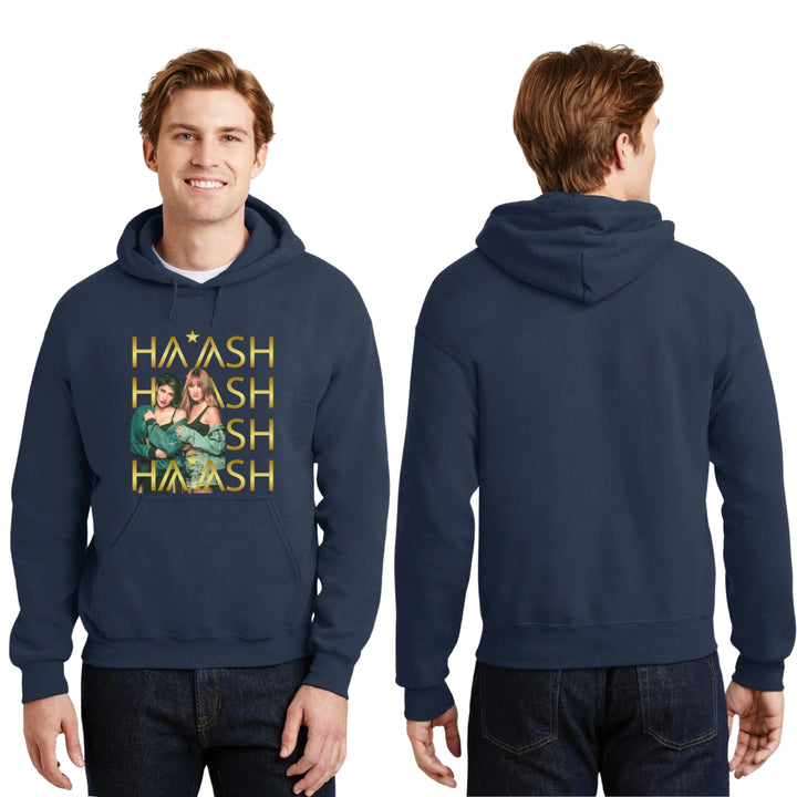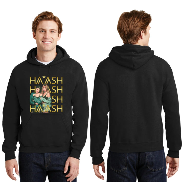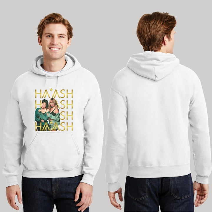 Sudadera hoodie de adulto con gorro o capucha y bolsillo frontal canguro, para hombre nueva, diseño HA-ASH Concierto original impreso con tecnología DTG (directo a la prenda) tacto cero, uso casual o deportiva, 50% algodón y 50% poliéster fleece pre encogido, estructura tubular con ajuste clásico. Colores de sudadera: Negro, Blanco, Azul Marino, Gris.