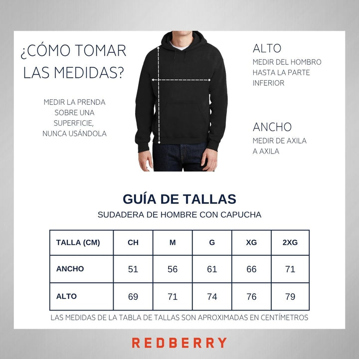 Sudadera hoodie de adulto con gorro o capucha y bolsillo frontal canguro, para Hombre nueva REDBERRY oficial, diseño original, uso casual o deportiva, 50% algodón y 50% poliéster fleece pre encogido, estructura tubular con ajuste clásico. Colores de sudadera: Negro.