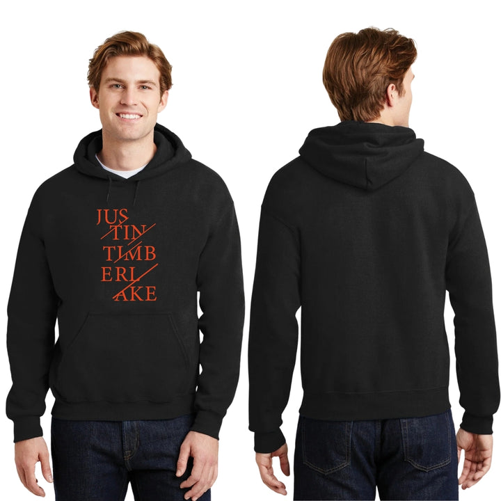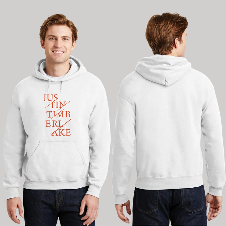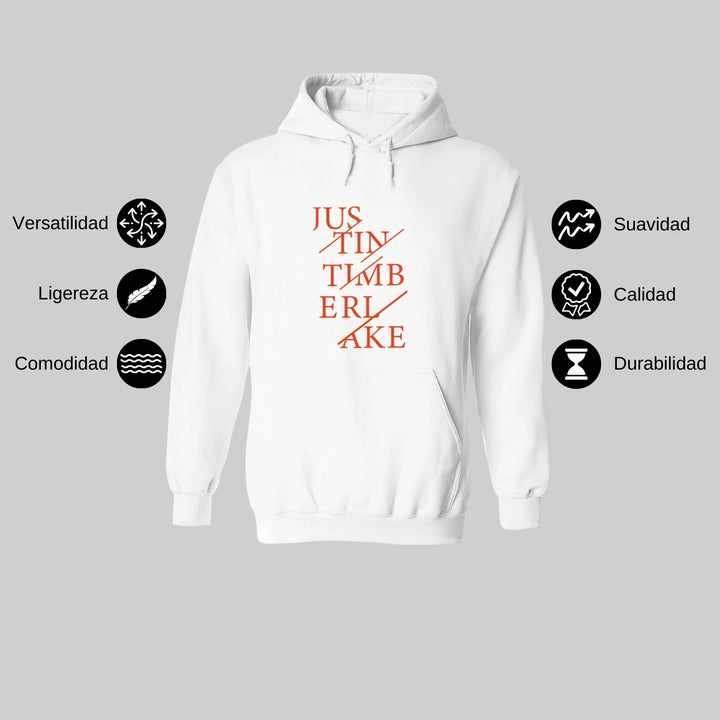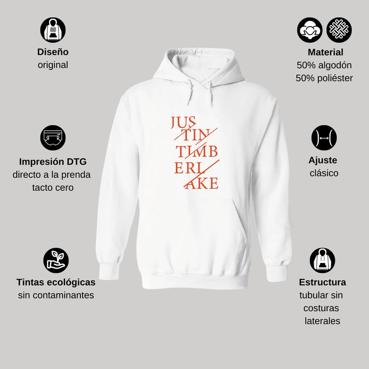 Sudadera hoodie de adulto con gorro o capucha y bolsillo frontal canguro, para hombre nueva, diseño Justin Timberlake World Tour original impreso con tecnología DTG (directo a la prenda) tacto cero, uso casual o deportiva, 50% algodón y 50% poliéster fleece pre encogido, estructura tubular con ajuste clásico. Colores de sudadera: Negro, Blanco.