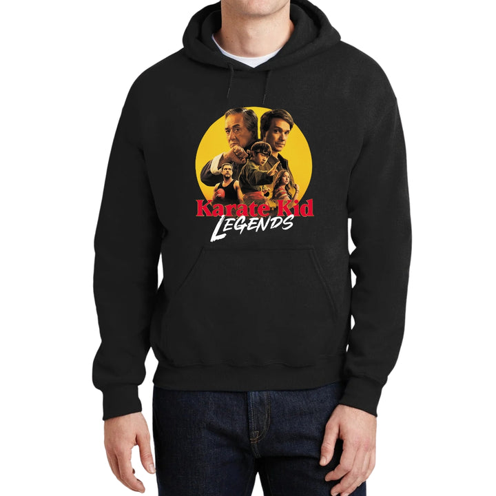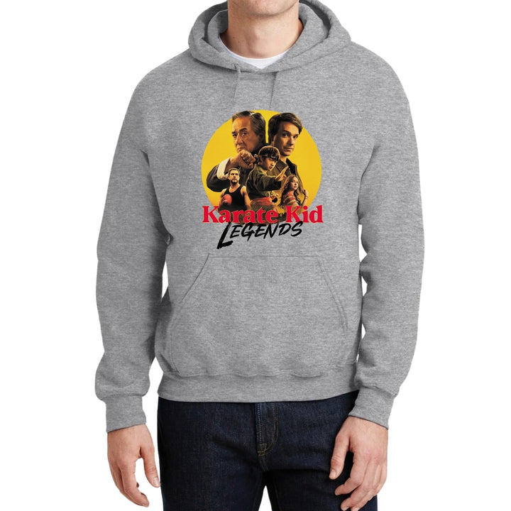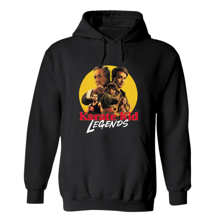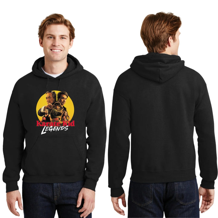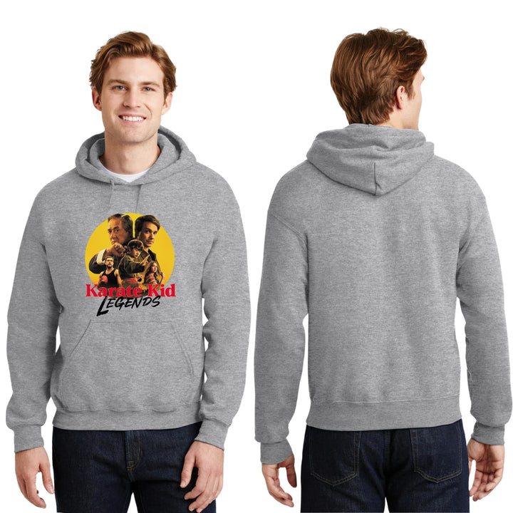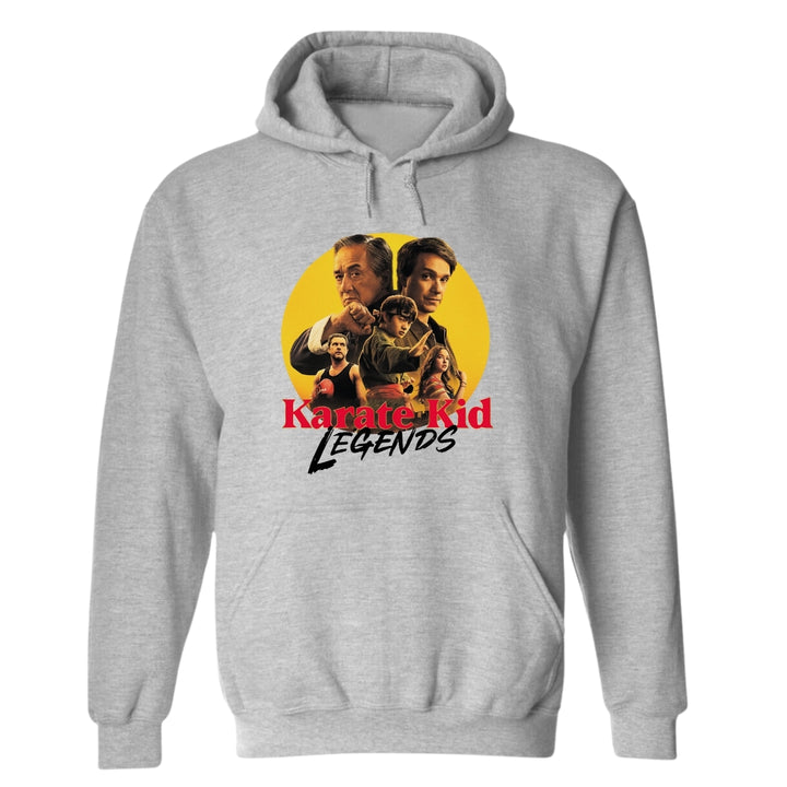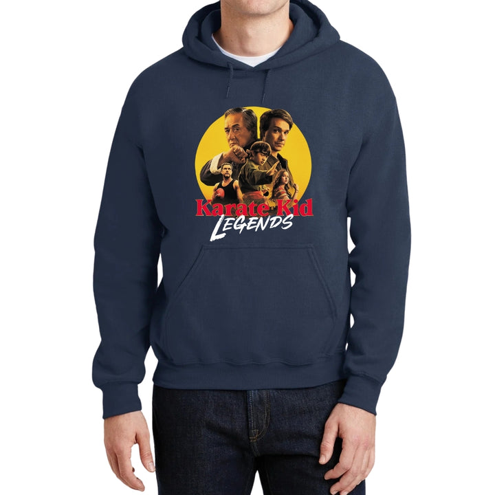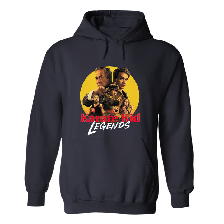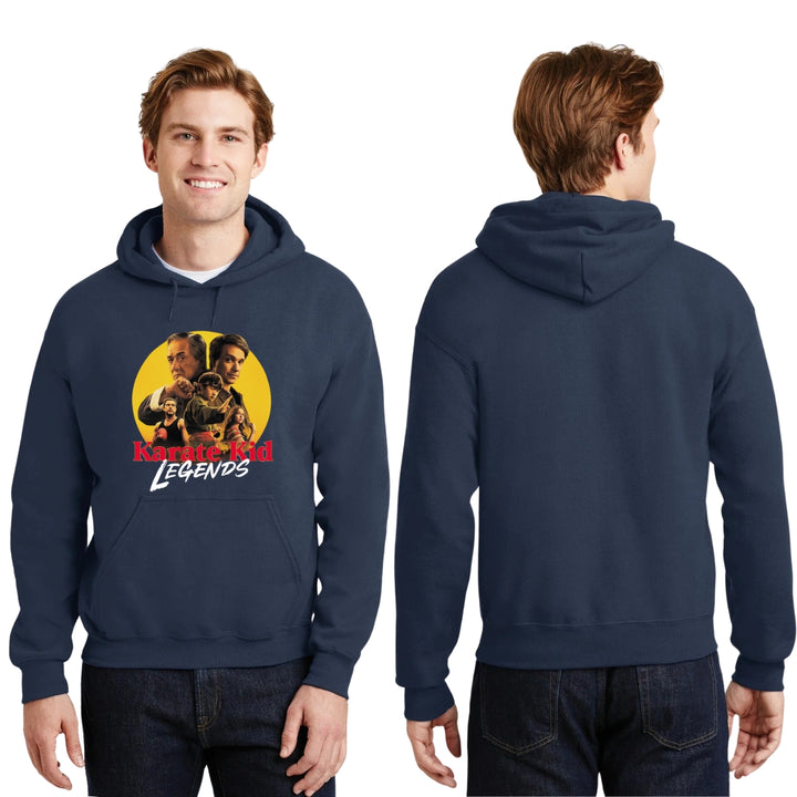 Sudadera hoodie de adulto con gorro o capucha y bolsillo frontal canguro, para hombre nueva, diseño Karate Kid Leyendas original impreso con tecnología DTG (directo a la prenda) tacto cero, uso casual o deportiva, 50% algodón y 50% poliéster fleece pre encogido, estructura tubular con ajuste clásico. Colores de sudadera: Negro, Blanco, Azul Marino, Gris.