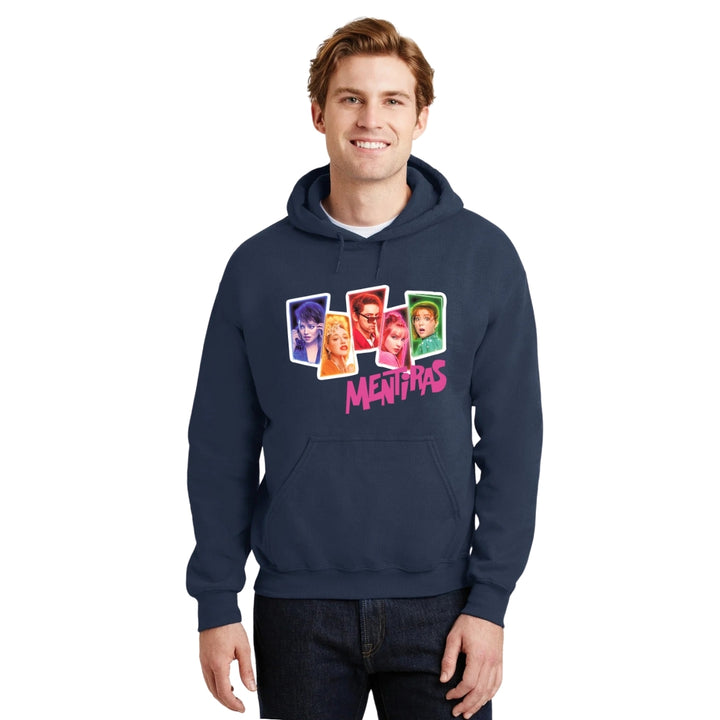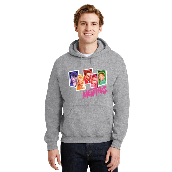 Sudadera hoodie de adulto con gorro o capucha y bolsillo frontal canguro, para hombre nueva, diseño La Serie Mentiras original impreso con tecnología DTG (directo a la prenda) tacto cero, uso casual o deportiva, 50% algodón y 50% poliéster fleece pre encogido, estructura tubular con ajuste clásico. Colores de sudadera: Negro, Blanco, Azul Marino, Gris.