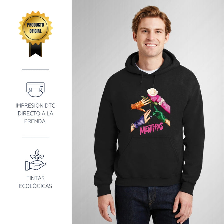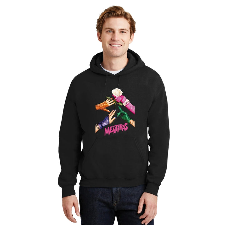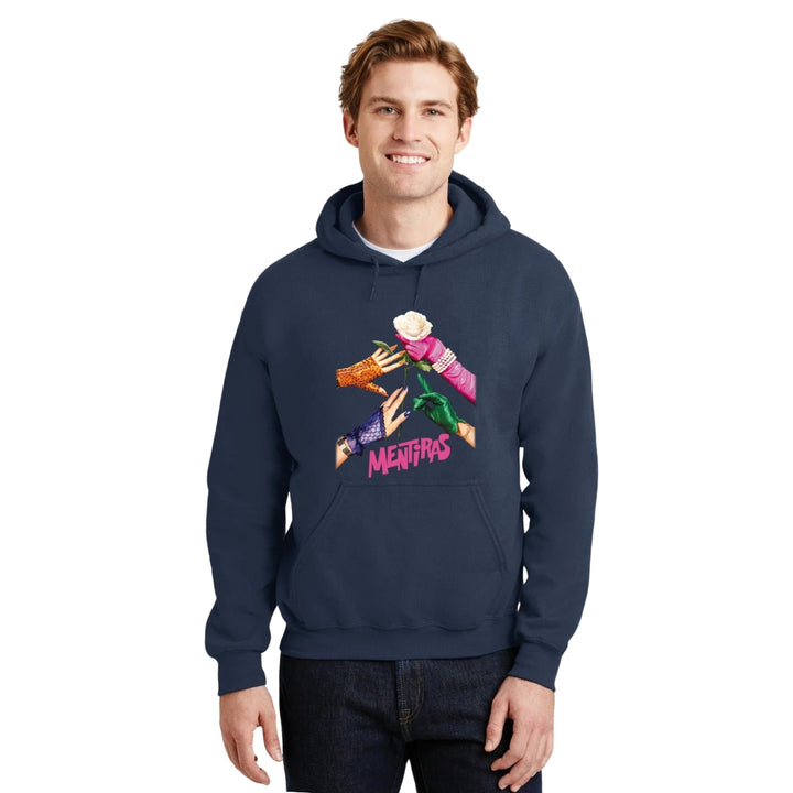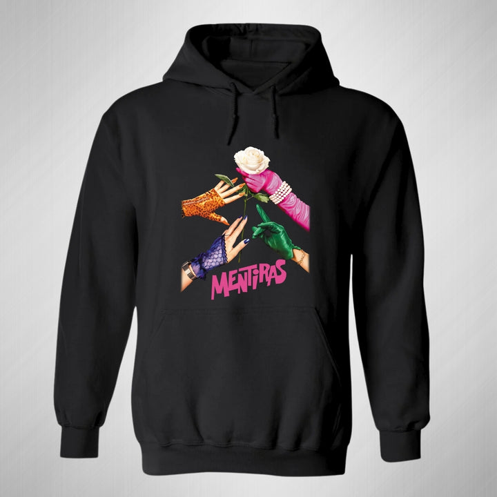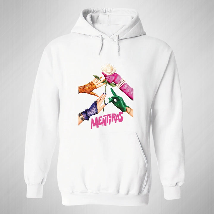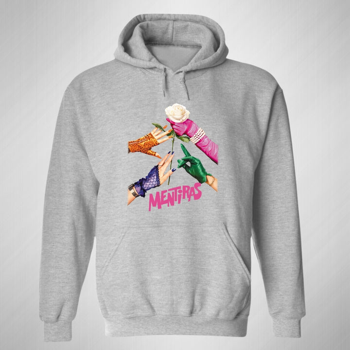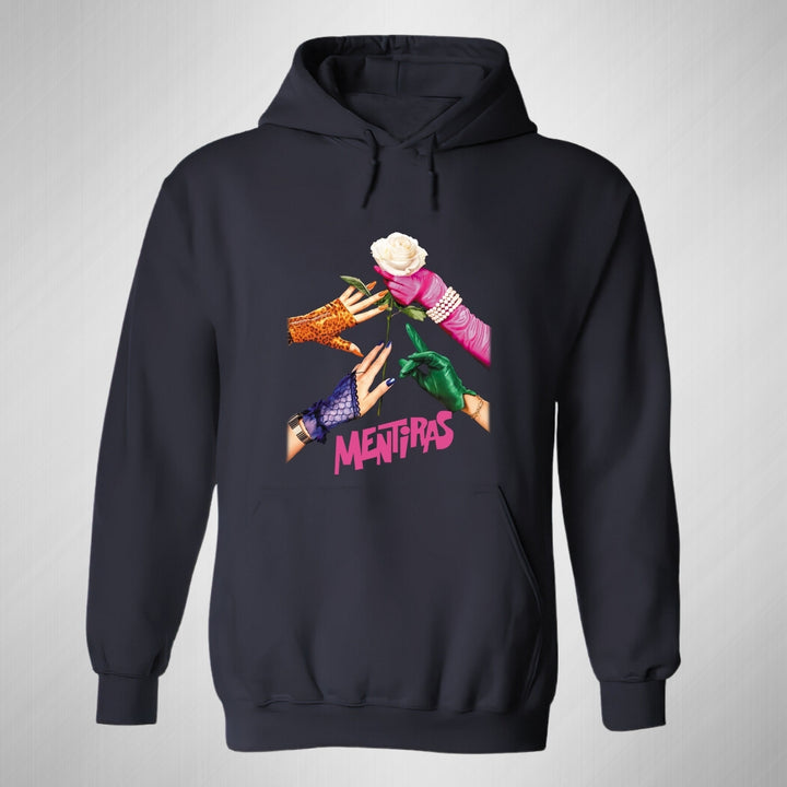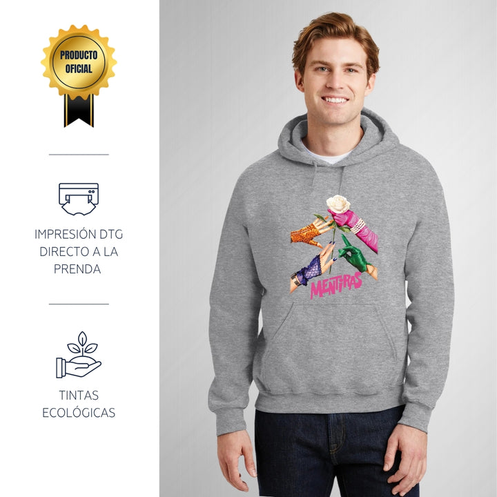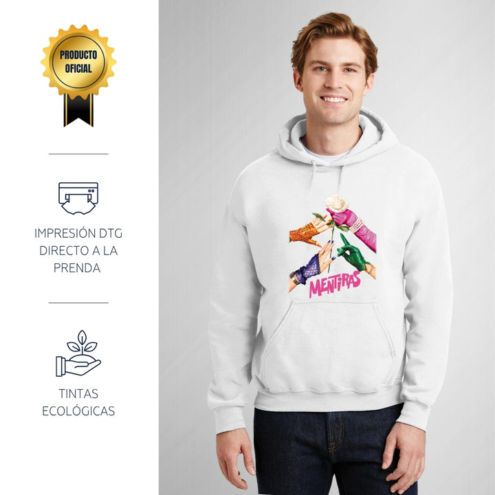 Sudadera hoodie de adulto con gorro o capucha y bolsillo frontal canguro, para hombre nueva, diseño Mentiras La Serie original impreso con tecnología DTG (directo a la prenda) tacto cero, uso casual o deportiva, 50% algodón y 50% poliéster fleece pre encogido, estructura tubular con ajuste clásico. Colores de sudadera: Negro, Blanco, Azul Marino, Gris.