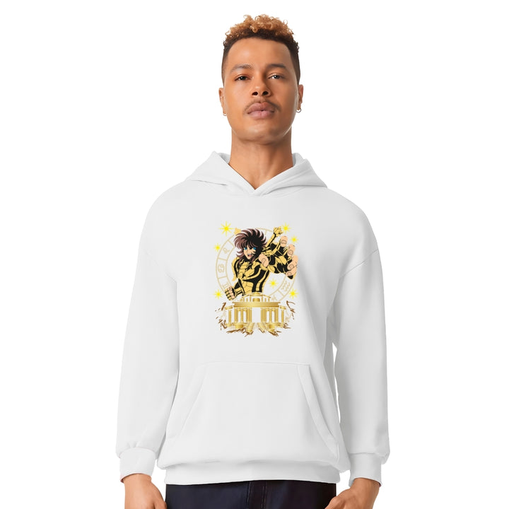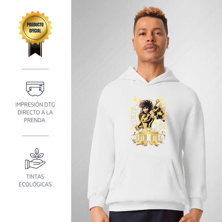 Sudadera hoodie transpirable pro dry de adulto con gorro o capucha y bolsillo frontal canguro, para hombre nueva, diseño Dohko de Libra Saint Seiya impreso con tecnología DTG (directo a la prenda) tacto cero, uso casual o deportiva, 100% poliéster, ajuste clásico. Colores de sudadera: Negro, Blanco.