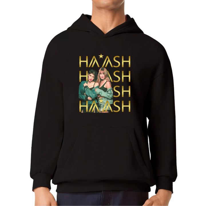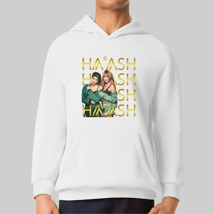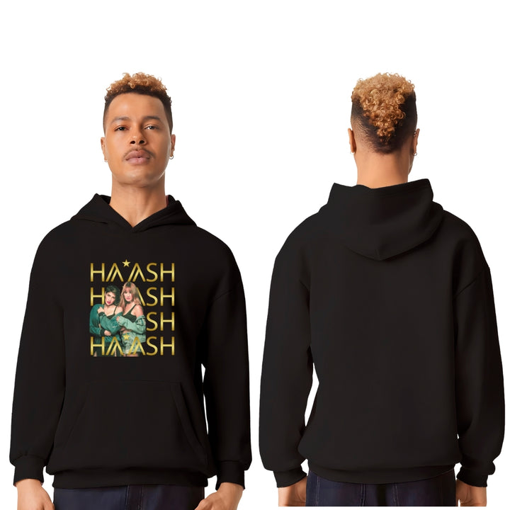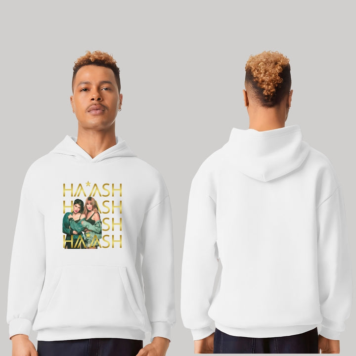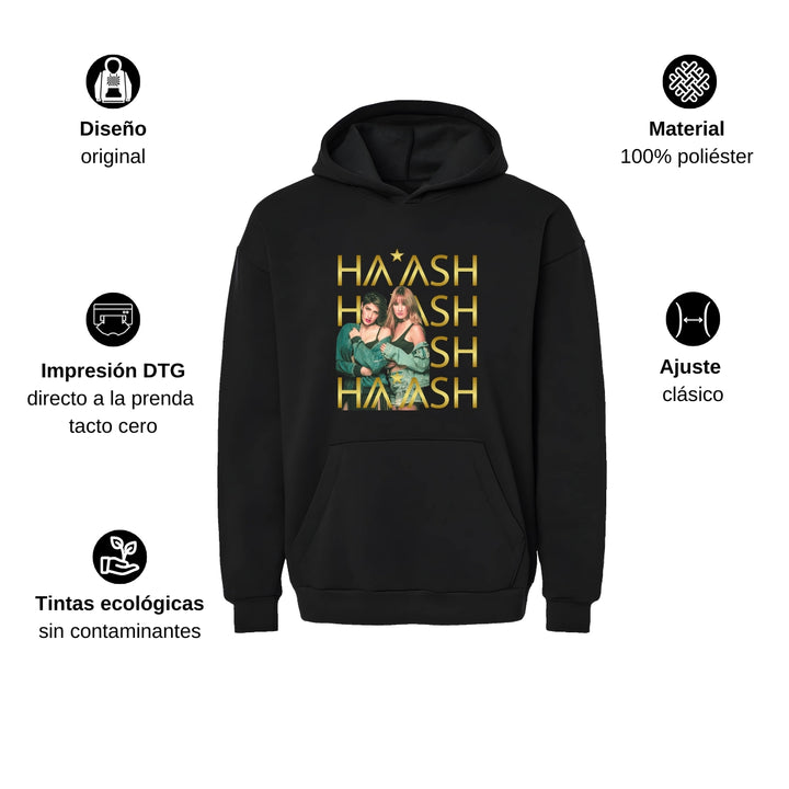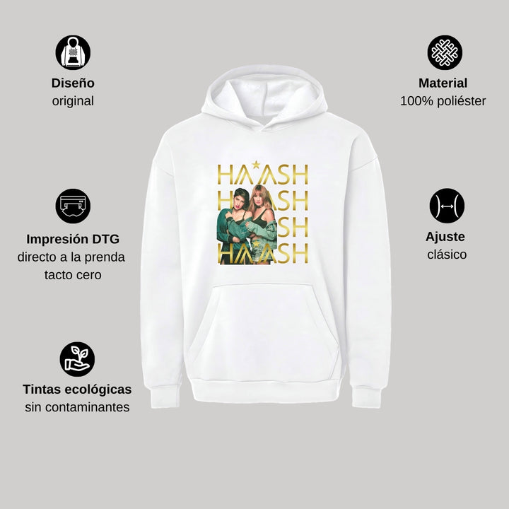 Sudadera hoodie transpirable pro dry de adulto con gorro o capucha y bolsillo frontal canguro, para hombre nueva, diseño HA-ASH Concierto impreso con tecnología DTG (directo a la prenda) tacto cero, uso casual o deportiva, 100% poliéster, ajuste clásico. Colores de sudadera: Negro, Blanco.