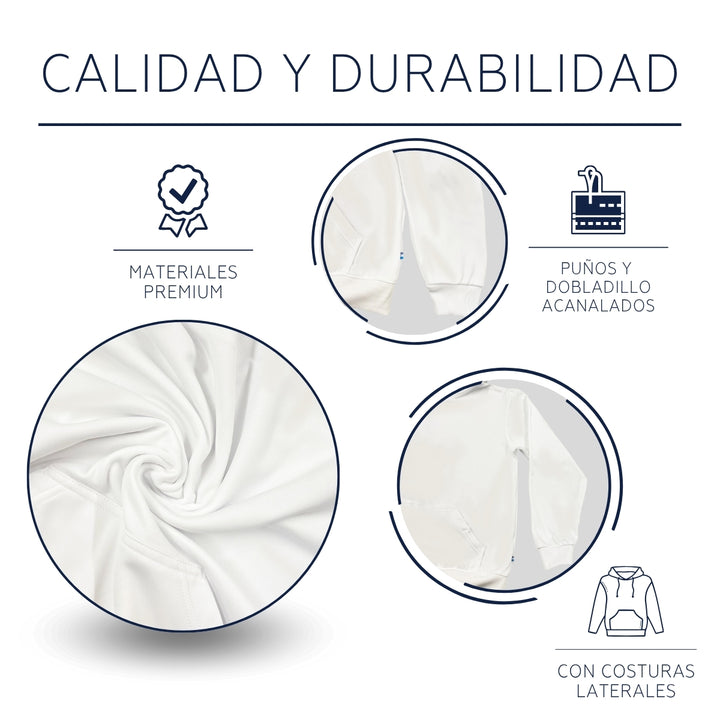 - SUAVIDAD: Sudadera de la más alta calidad, desde el tejido hasta los acabados. Elaborada de 50% algodón y 50% poliéster fleece pre encogido que ofrece calor a partir de una tela gruesa y acogedora en un estilo clásico, brindando una experiencia de uso cómoda y agradable para la piel.