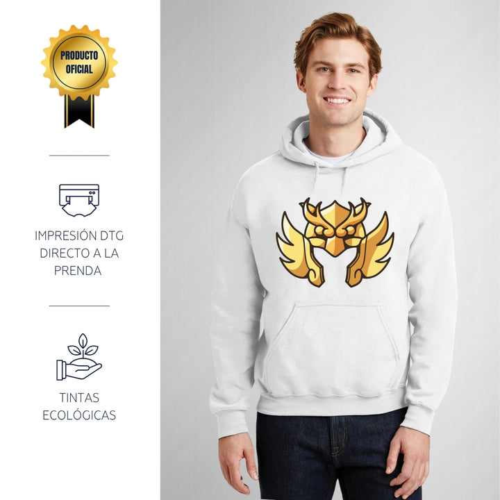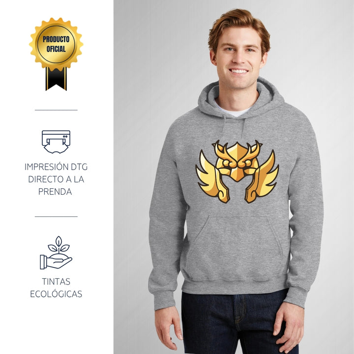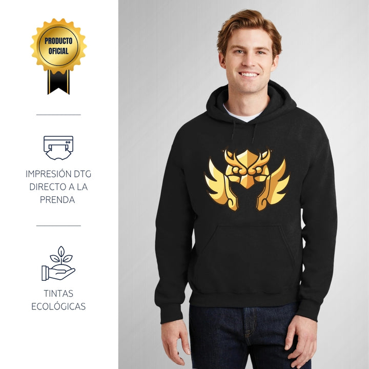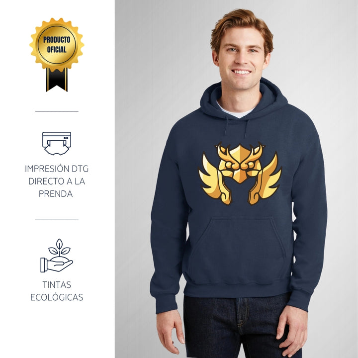 Sudadera hoodie de adulto con gorro o capucha y bolsillo frontal canguro, para hombre nueva, diseño Saint Seiya Libra original impreso con tecnología DTG (directo a la prenda) tacto cero, uso casual o deportiva, 50% algodón y 50% poliéster fleece pre encogido, estructura tubular con ajuste clásico. Colores de sudadera: Negro, Blanco, Azul Marino, Gris.