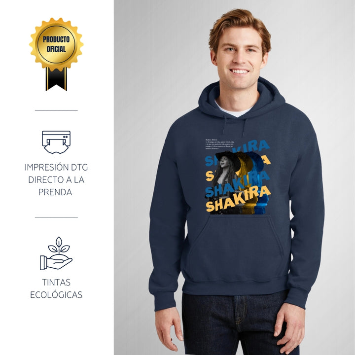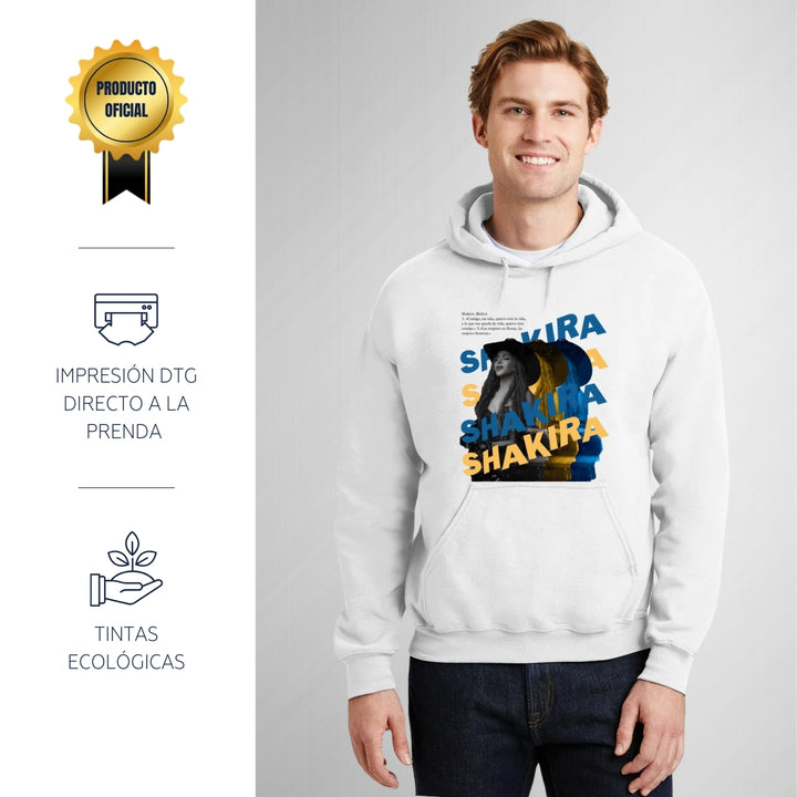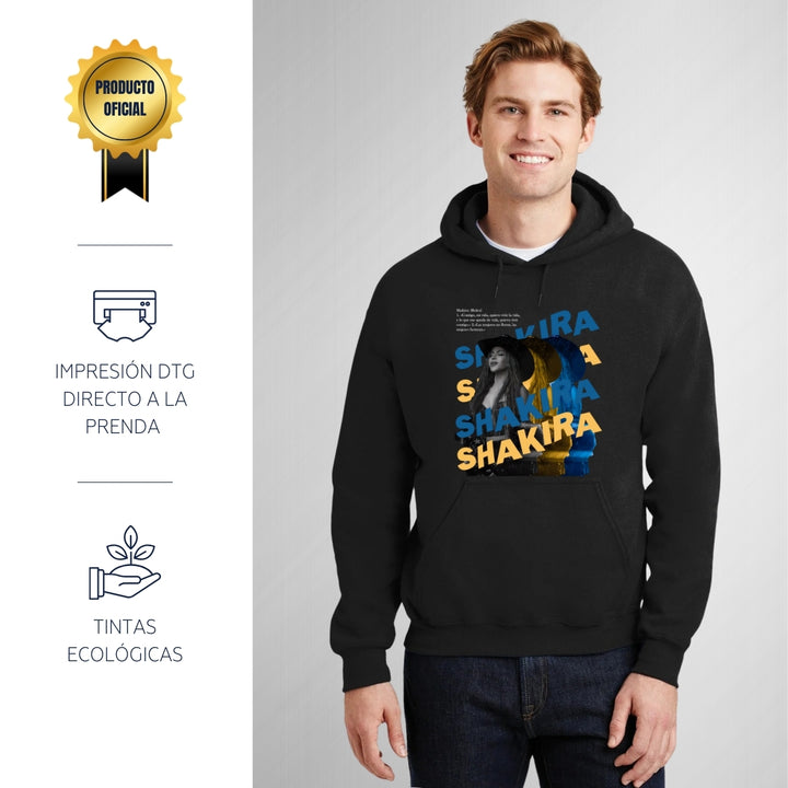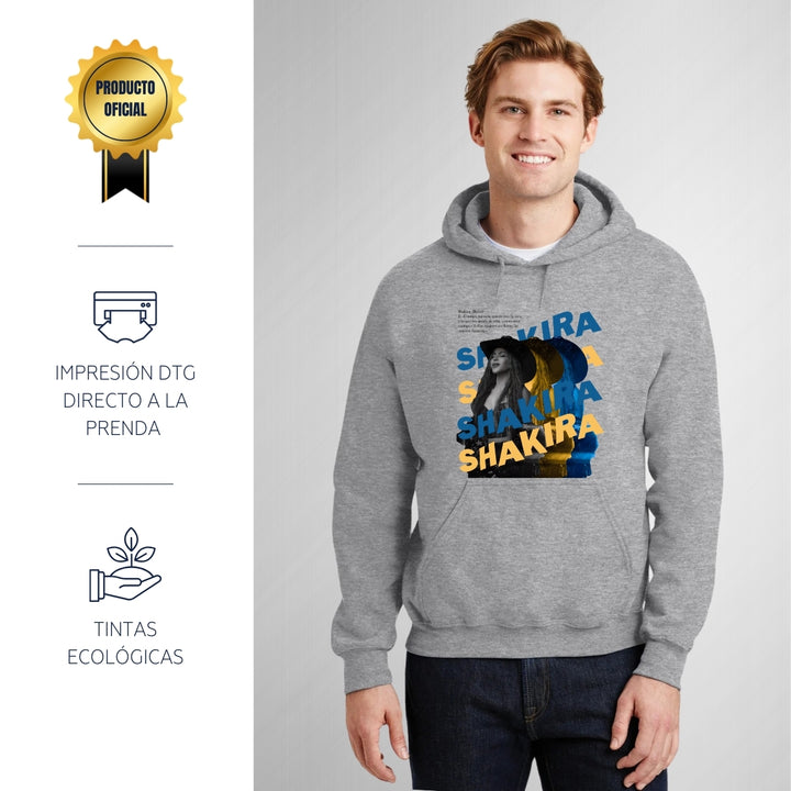 Sudadera hoodie de adulto con gorro o capucha y bolsillo frontal canguro, para hombre nueva, diseño Shakira Rolex original impreso con tecnología DTG (directo a la prenda) tacto cero, uso casual o deportiva, 50% algodón y 50% poliéster fleece pre encogido, estructura tubular con ajuste clásico.
