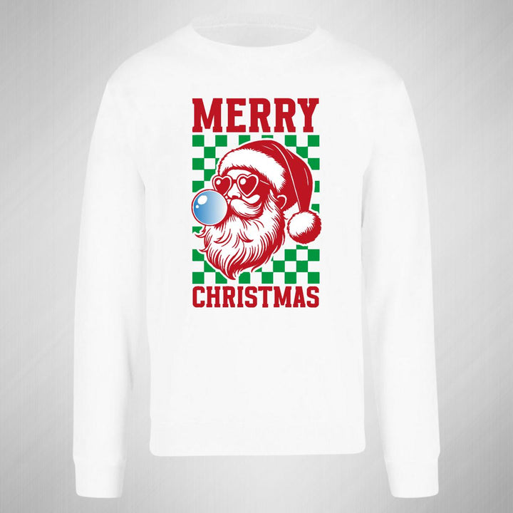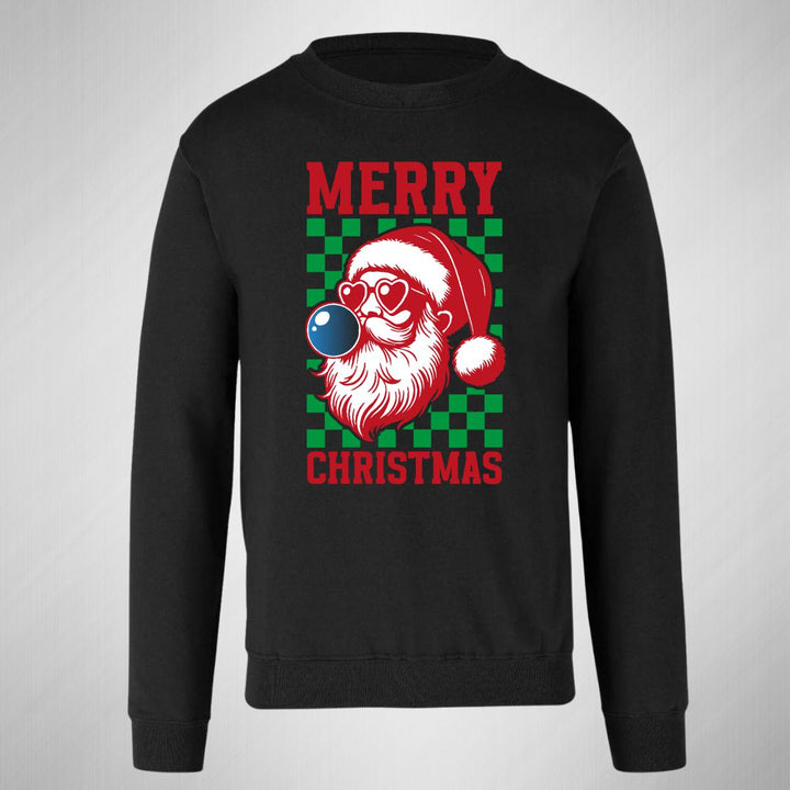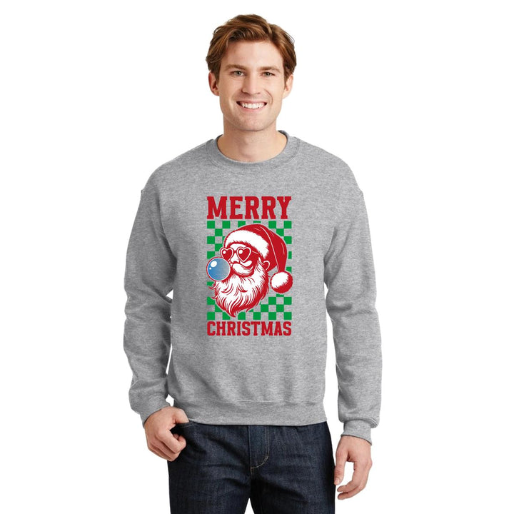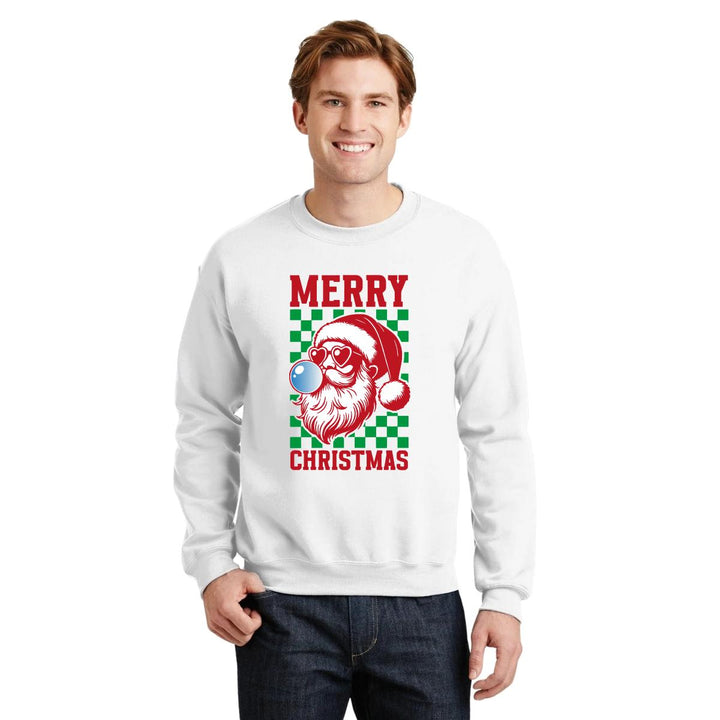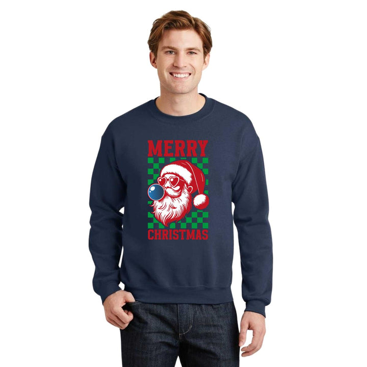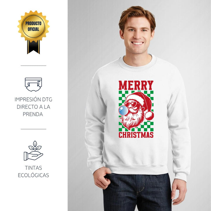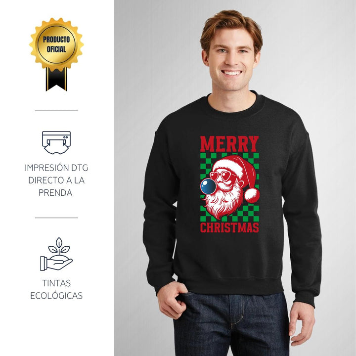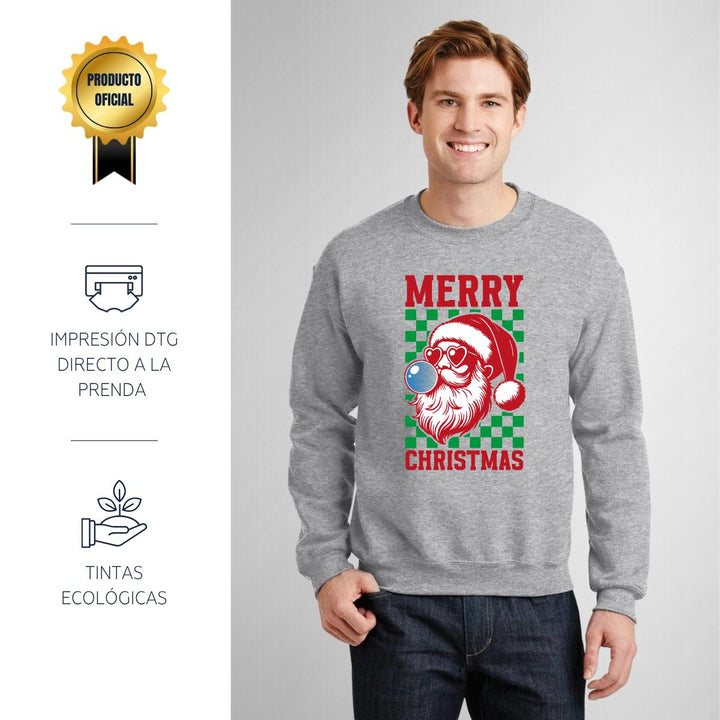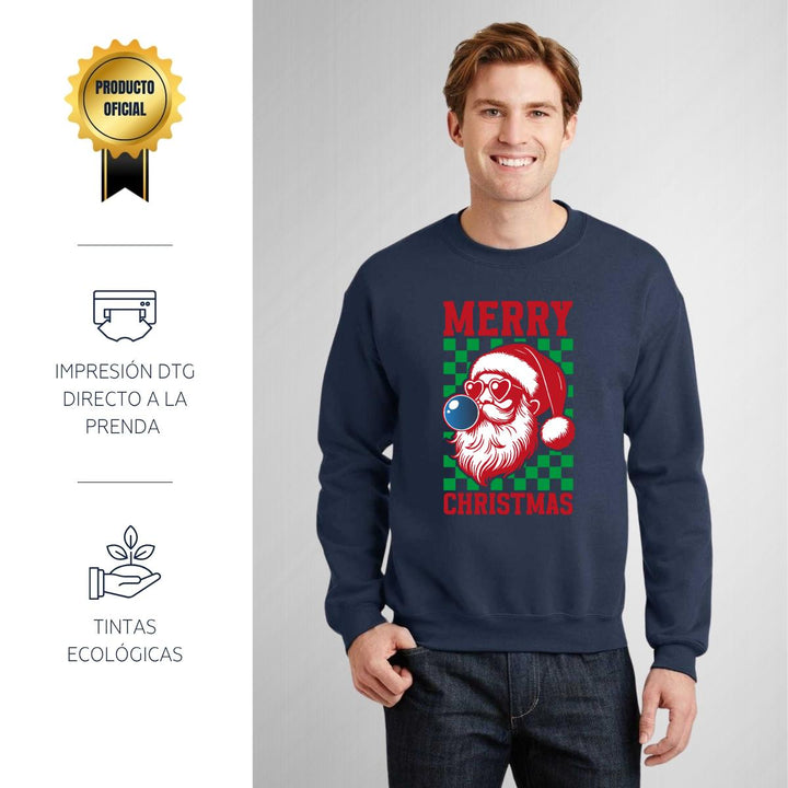 Sudadera de adulto cuello redondo sin gorro o capucha, para hombre nueva, diseño Merry Christmas original impreso con tecnología DTG (directo a la prenda) tacto cero, uso casual o deportiva, 50% algodón y 50% poliéster, estructura sin costura en los costados con ajuste clásico. Colores de sudadera: Negro, Blanco, Azul Marino, Gris.