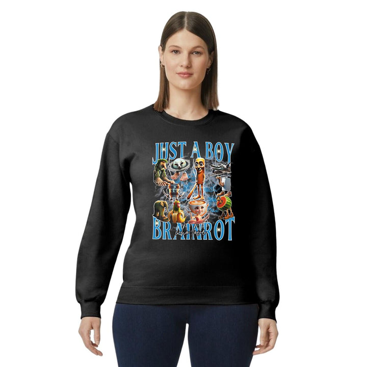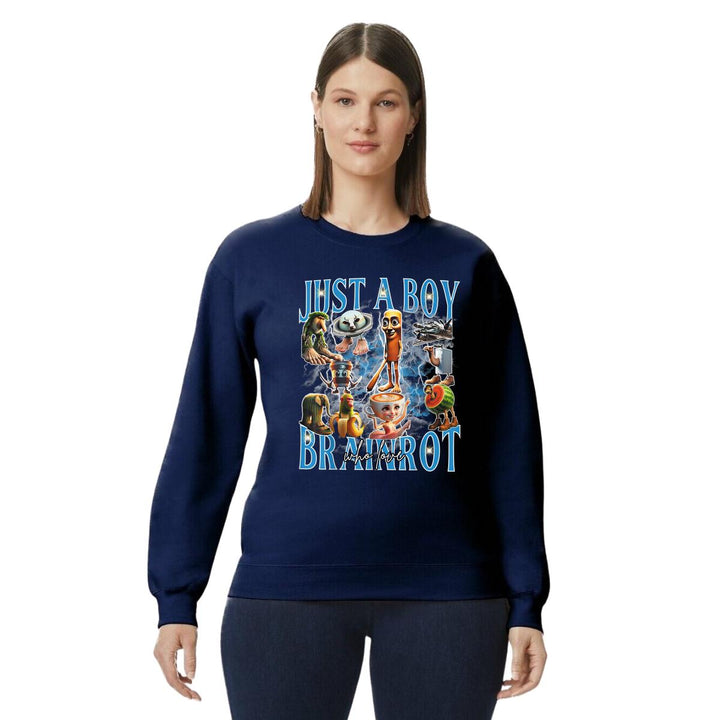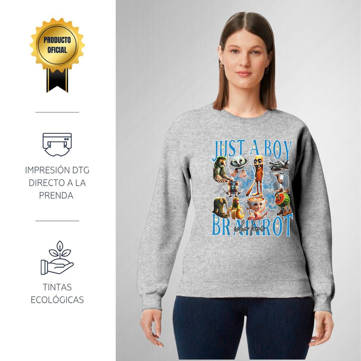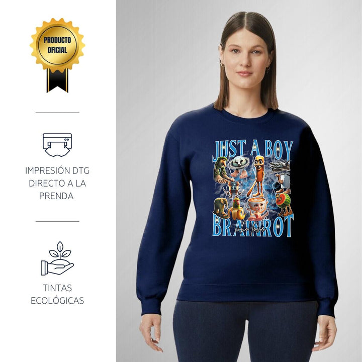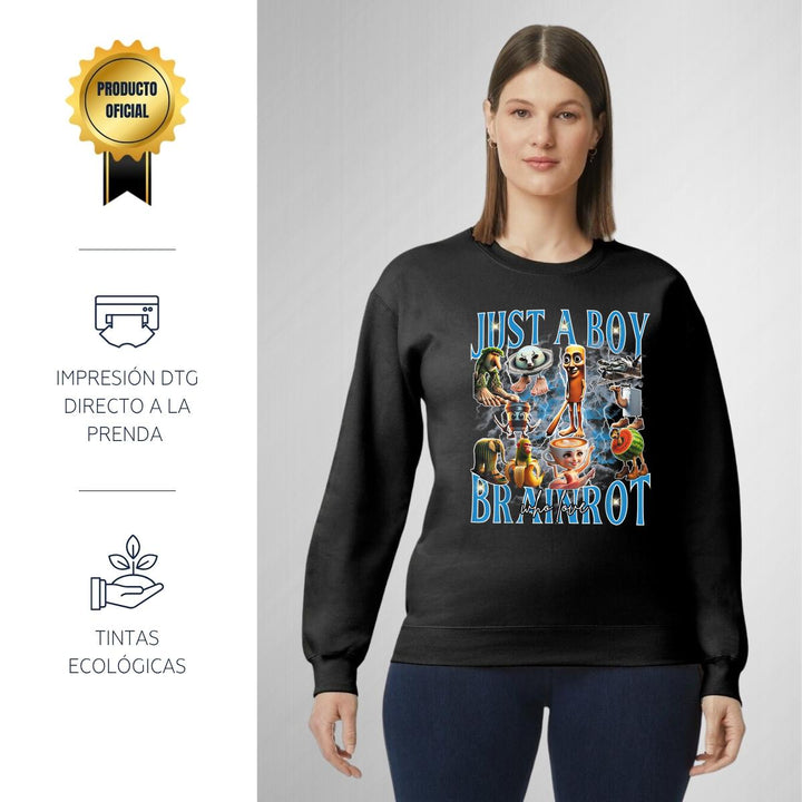Sudadera de adulto cuello redondo sin gorro o capucha, para mujer nueva, diseño Brainrot Italianos original impreso con tecnología DTG (directo a la prenda) tacto cero, uso casual o deportiva, 50% algodón y 50% poliéster, estructura sin costura en los costados con ajuste clásico. Colores de sudadera: Negro, Blanco, Azul Marino, Gris.