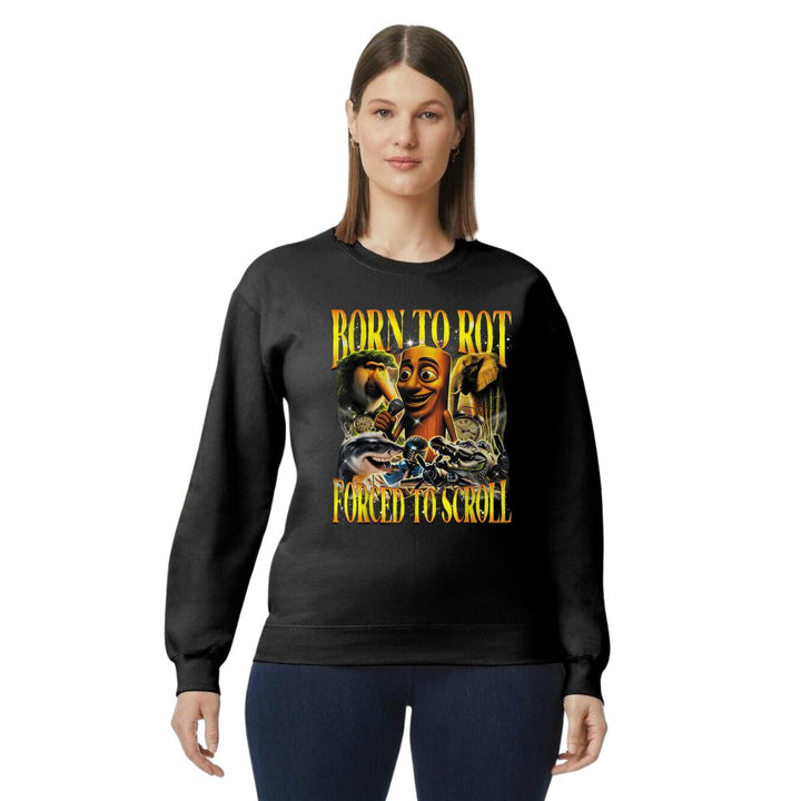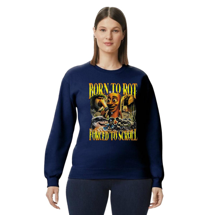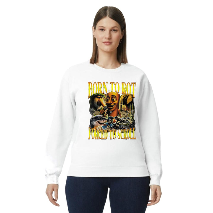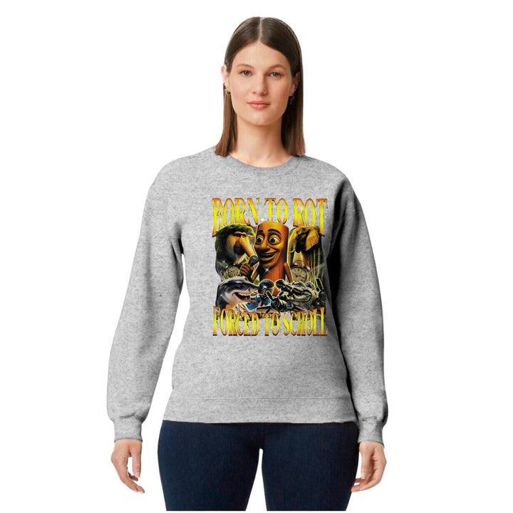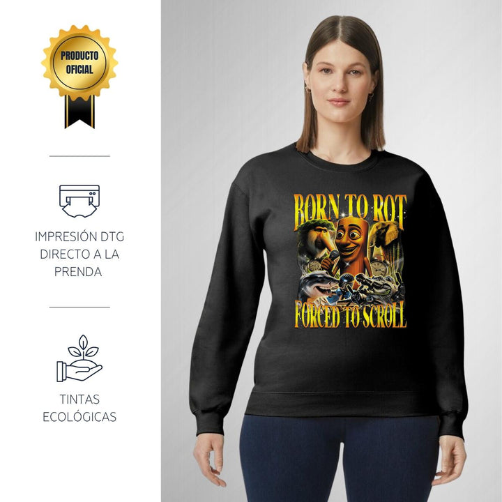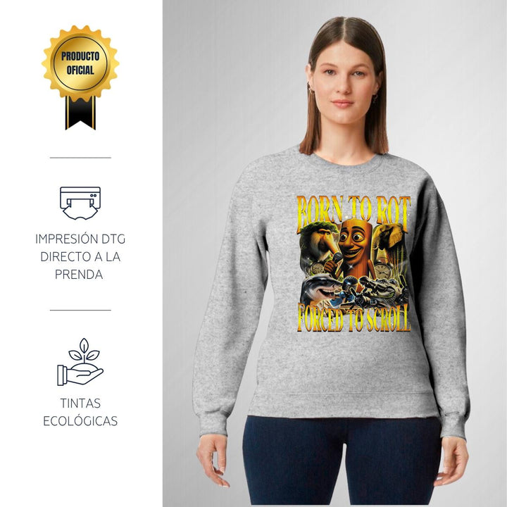 Sudadera de adulto cuello redondo sin gorro o capucha, para mujer nueva, diseño Brainrot Italianos original impreso con tecnología DTG (directo a la prenda) tacto cero, uso casual o deportiva, 50% algodón y 50% poliéster, estructura sin costura en los costados con ajuste clásico. Colores de sudadera: Negro, Blanco, Azul Marino, Gris.