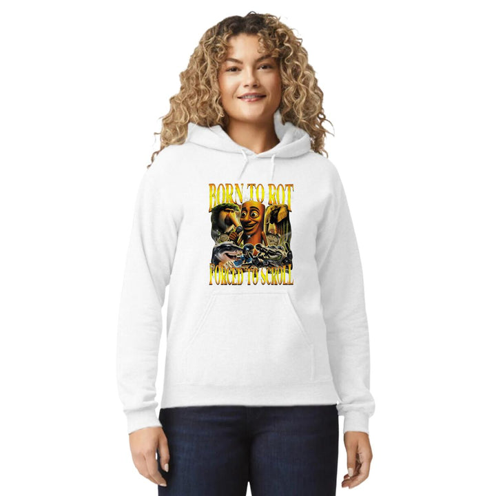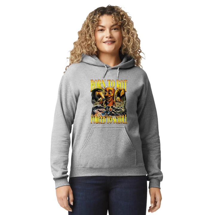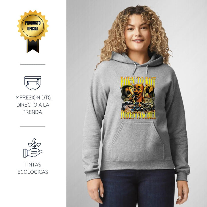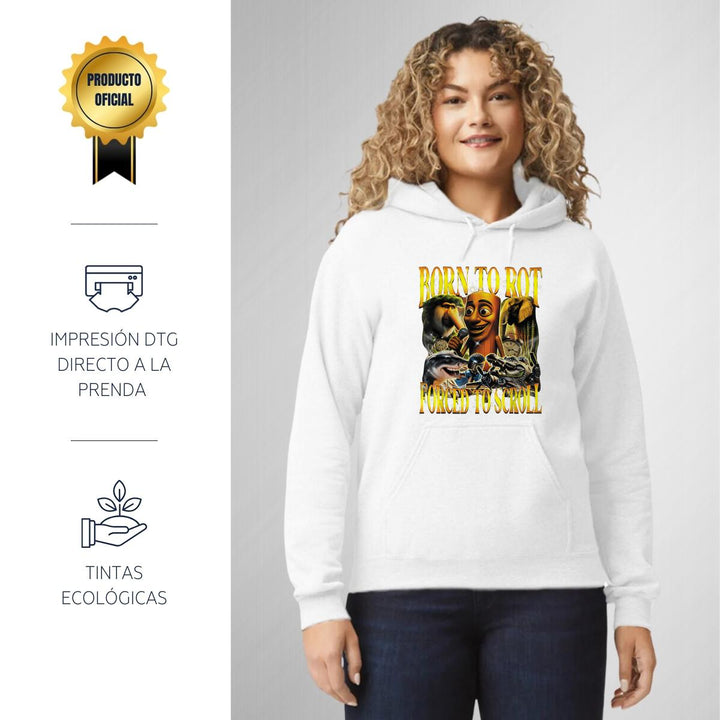 Sudadera hoodie de adulto con gorro o capucha y bolsillo frontal canguro, para mujer nueva, diseño Brainrot Italianos original impreso con tecnología DTG (directo a la prenda) tacto cero, uso casual o deportiva, 50% algodón y 50% poliéster fleece pre encogido, estructura tubular con ajuste clásico. Colores de sudadera: Negro, Blanco, Azul Marino, Gris.