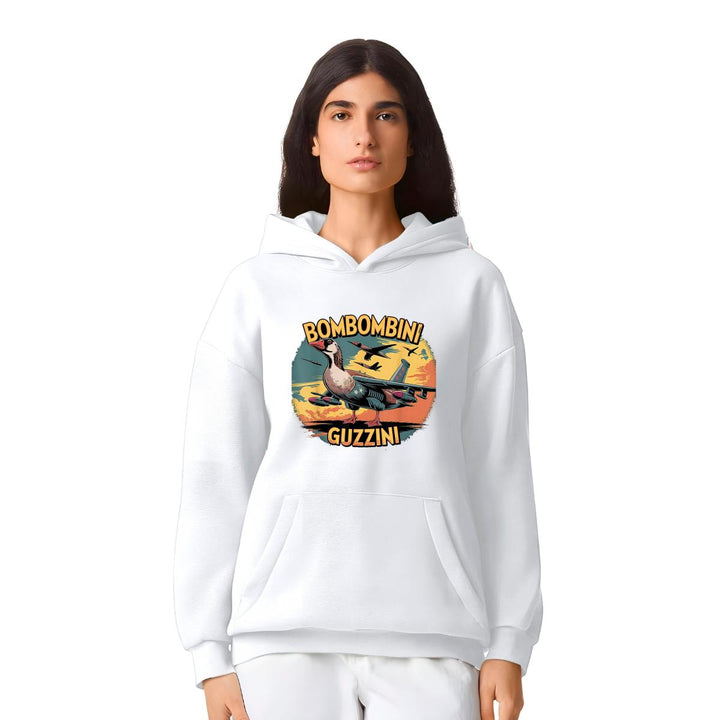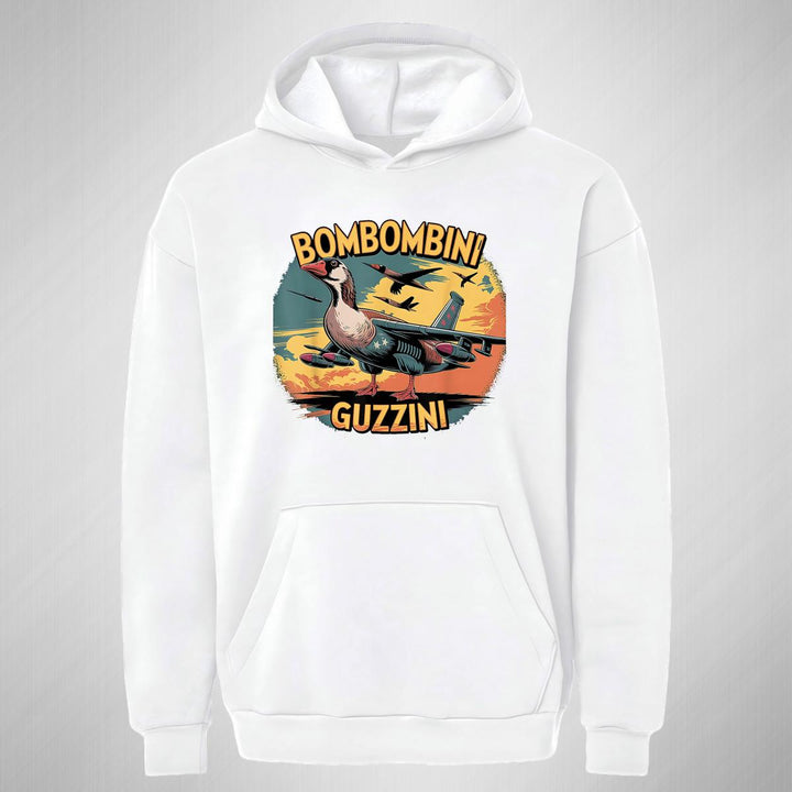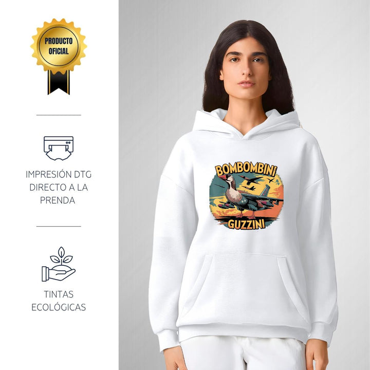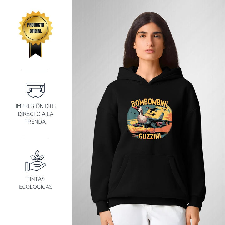 Sudadera hoodie transpirable pro dry de adulto con gorro o capucha y bolsillo frontal canguro, para mujer nueva, diseño Brainrot Bombombini Gusini impreso con tecnología DTG (directo a la prenda) tacto cero, uso casual o deportiva, 100% poliéster, ajuste clásico. Colores de sudadera: Negro, Blanco.
