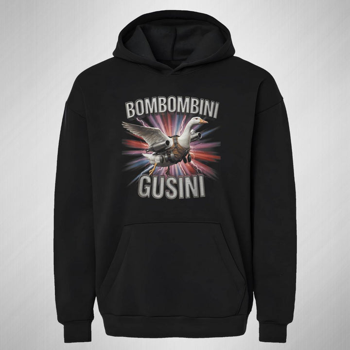 Sudadera hoodie transpirable pro dry de adulto con gorro o capucha y bolsillo frontal canguro, para mujer nueva, diseño Brainrot Bombombini Gusini impreso con tecnología DTG (directo a la prenda) tacto cero, uso casual o deportiva, 100% poliéster, ajuste clásico. Colores de sudadera: Negro.