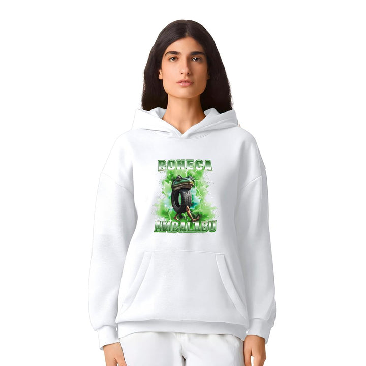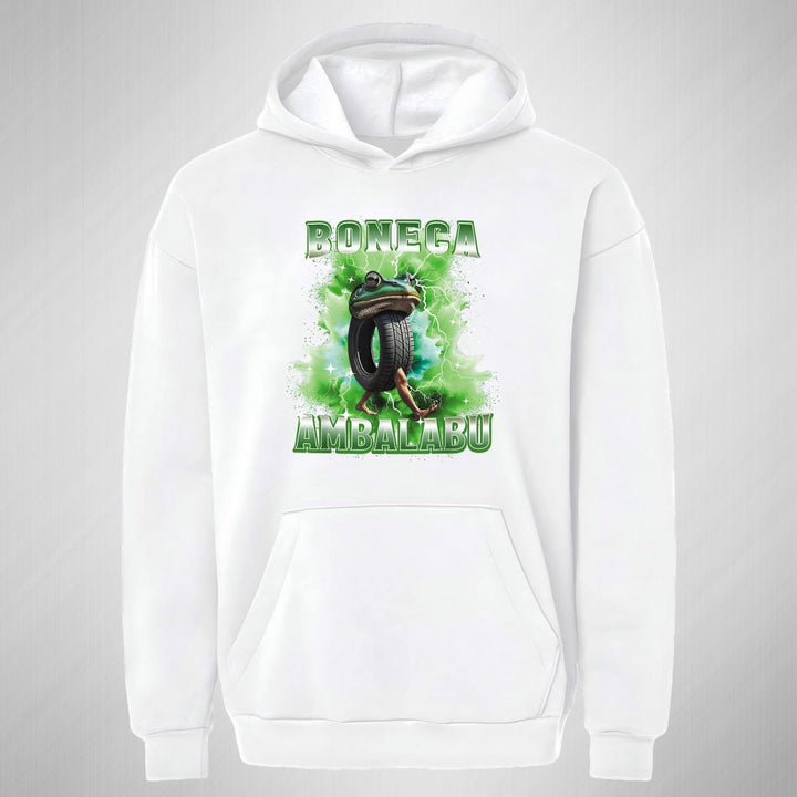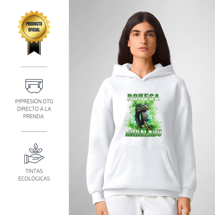 Sudadera hoodie transpirable pro dry de adulto con gorro o capucha y bolsillo frontal canguro, para mujer nueva, diseño Brainrot Boneca Ambalabu impreso con tecnología DTG (directo a la prenda) tacto cero, uso casual o deportiva, 100% poliéster, ajuste clásico. Colores de sudadera: Negro, Blanco.