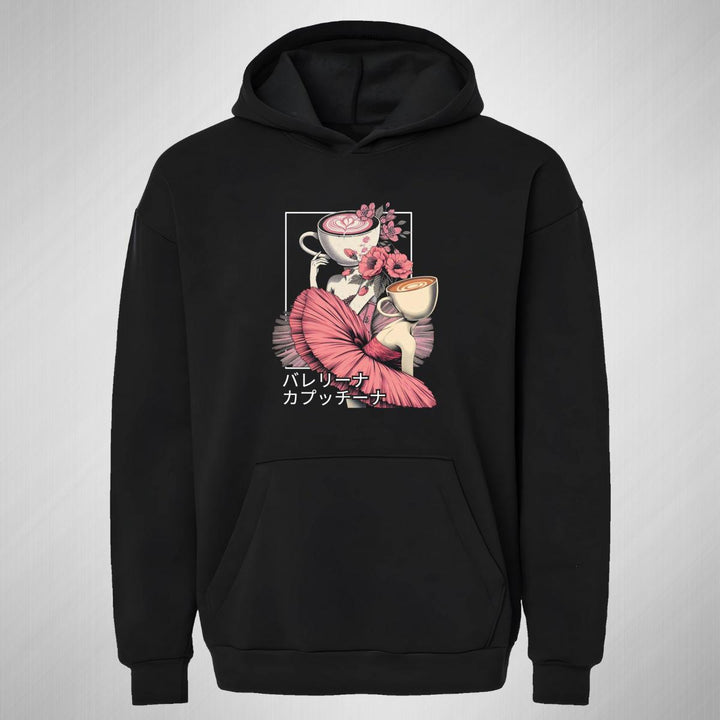 Sudadera hoodie transpirable pro dry de adulto con gorro o capucha y bolsillo frontal canguro, para mujer nueva, diseño Brainrot Ballerina Capuchina impreso con tecnología DTG (directo a la prenda) tacto cero, uso casual o deportiva, 100% poliéster, ajuste clásico. Colores de sudadera: Negro.