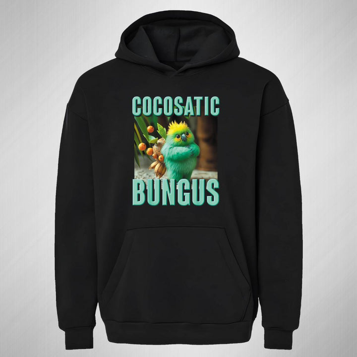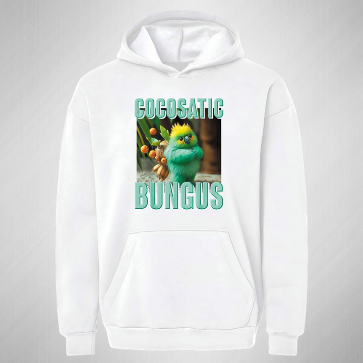 Sudadera hoodie transpirable pro dry de adulto con gorro o capucha y bolsillo frontal canguro, para mujer nueva, diseño Brainrot Cocosatic Bungus impreso con tecnología DTG (directo a la prenda) tacto cero, uso casual o deportiva, 100% poliéster, ajuste clásico. Colores de sudadera: Negro, Blanco.