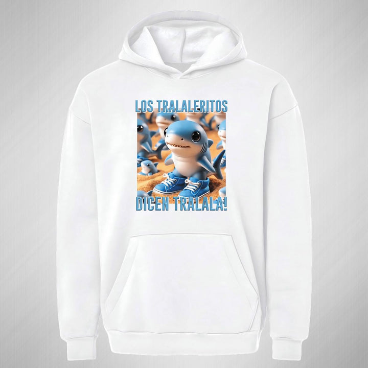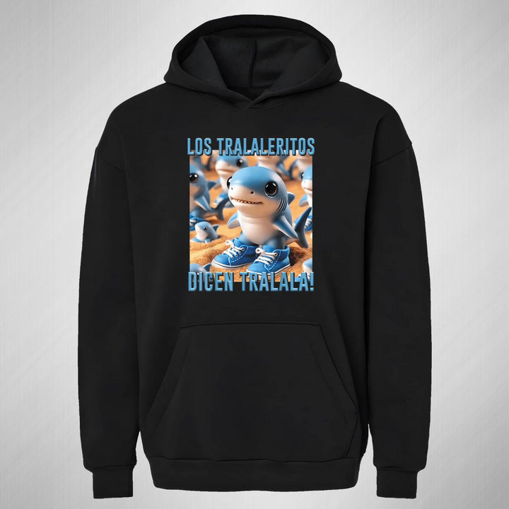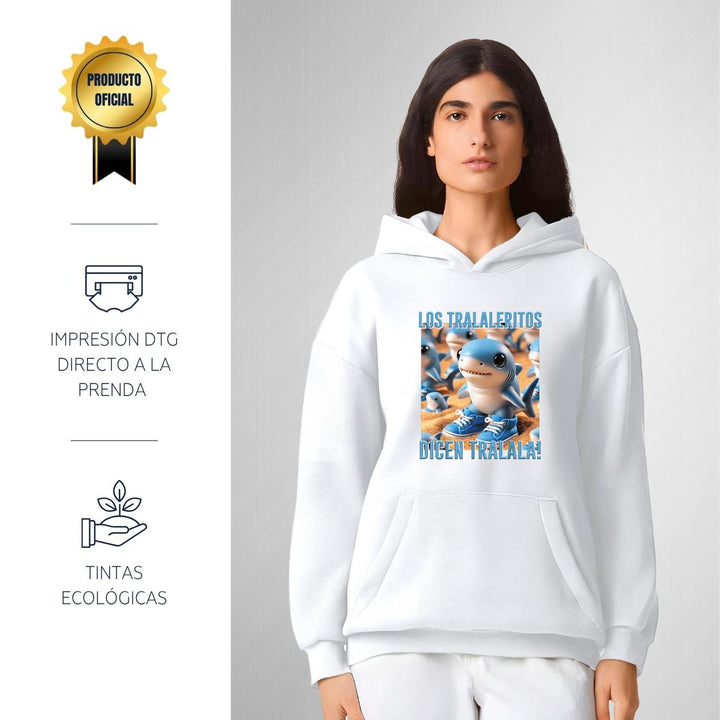 Sudadera hoodie transpirable pro dry de adulto con gorro o capucha y bolsillo frontal canguro, para mujer nueva, diseño Brainrot Los Tralaleritos impreso con tecnología DTG (directo a la prenda) tacto cero, uso casual o deportiva, 100% poliéster, ajuste clásico. Colores de sudadera: Negro, Blanco.