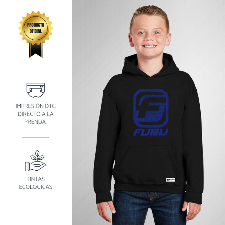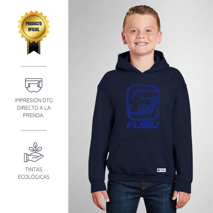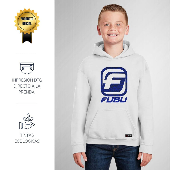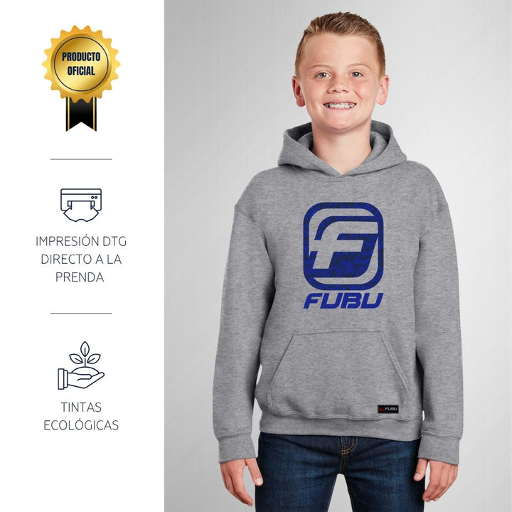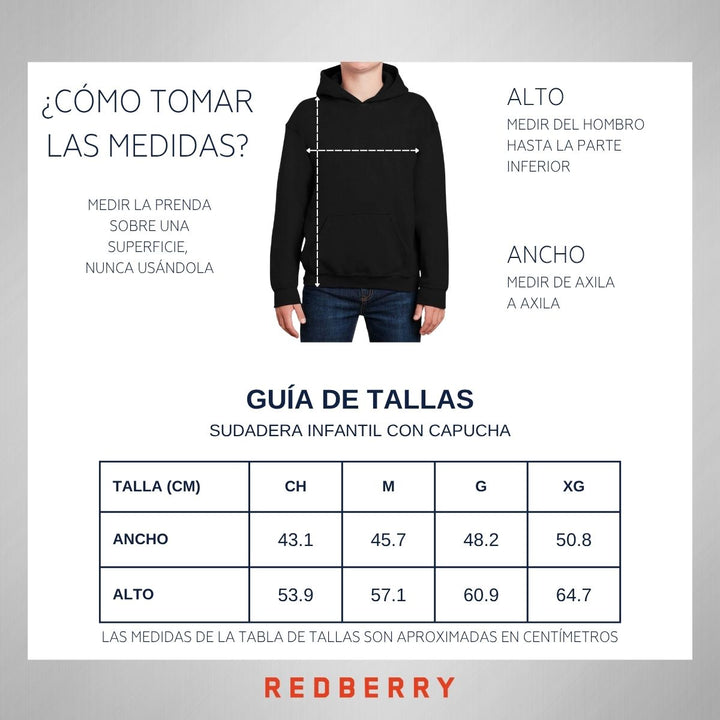Sudadera hoodie infantil con gorro o capucha y bolsillo frontal canguro nueva, para niño o niña, diseño Logo original impreso con tecnología DTG (directo a la prenda) tacto cero, uso casual o deportiva, 50% algodón y 50% poliéster fleece pre encogido, estructura tubular con ajuste clásico. Colores de sudadera: Negro, Blanco, Azul Marino, Gris.