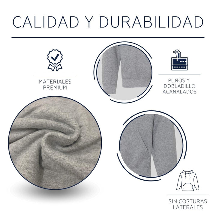 - SUAVIDAD: Sudadera de la más alta calidad, desde el tejido hasta los acabados. Elaborada de 50% algodón y 50% poliéster fleece pre encogido que ofrece calor a partir de una tela gruesa y acogedora en un estilo clásico, brindando una experiencia de uso cómoda y agradable para la piel.