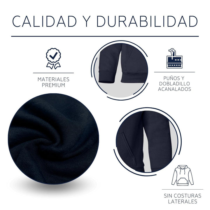 - SUAVIDAD: Sudadera de la más alta calidad, desde el tejido hasta los acabados. Elaborada de 50% algodón y 50% poliéster fleece pre encogido que ofrece calor a partir de una tela gruesa y acogedora en un estilo clásico, brindando una experiencia de uso cómoda y agradable para la piel.