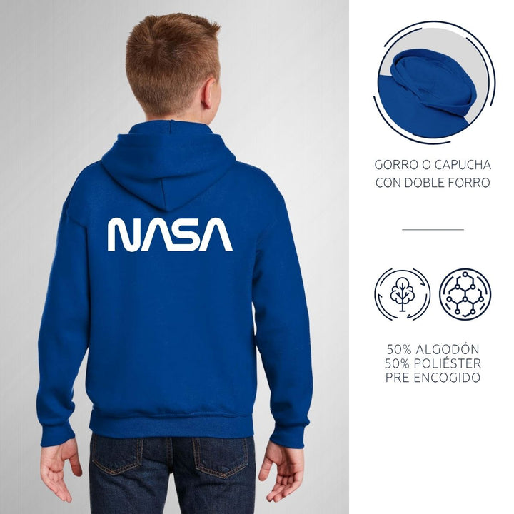 Sudadera hoodie infantil con gorro o capucha y bolsillo frontal canguro nueva, para niño o niña, diseño Perro Astronauta original impreso con tecnología DTG (directo a la prenda) tacto cero, uso casual o deportiva, 50% algodón y 50% poliéster fleece pre encogido, estructura tubular con ajuste clásico. Colores de sudadera: Azul Rey, Negro, Blanco.