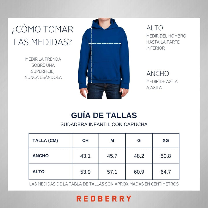 Sudadera hoodie infantil con gorro o capucha y bolsillo frontal canguro nueva, para niño o niña, diseño Worm Red original impreso con tecnología DTG (directo a la prenda) tacto cero, uso casual o deportiva, 50% algodón y 50% poliéster fleece pre encogido, estructura tubular con ajuste clásico. Colores de sudadera: Azul Rey, Negro, Blanco.