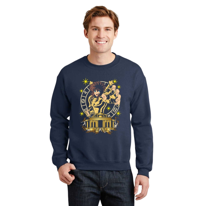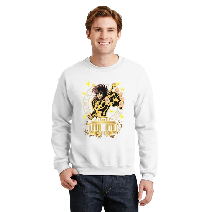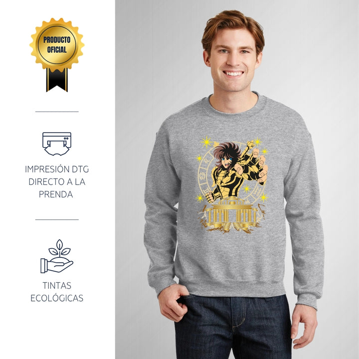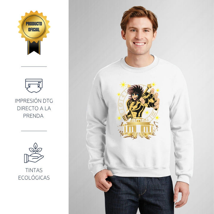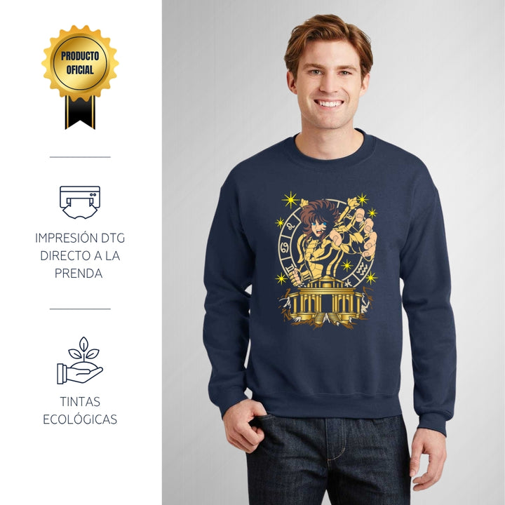 Sudadera de adulto cuello redondo sin gorro o capucha, para hombre nueva, diseño Dohko de Libra Saint Seiya original impreso con tecnología DTG (directo a la prenda) tacto cero, uso casual o deportiva, 50% algodón y 50% poliéster, estructura sin costura en los costados con ajuste clásico. Colores de sudadera: Negro, Blanco, Azul Marino, Gris.