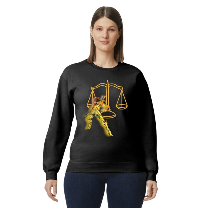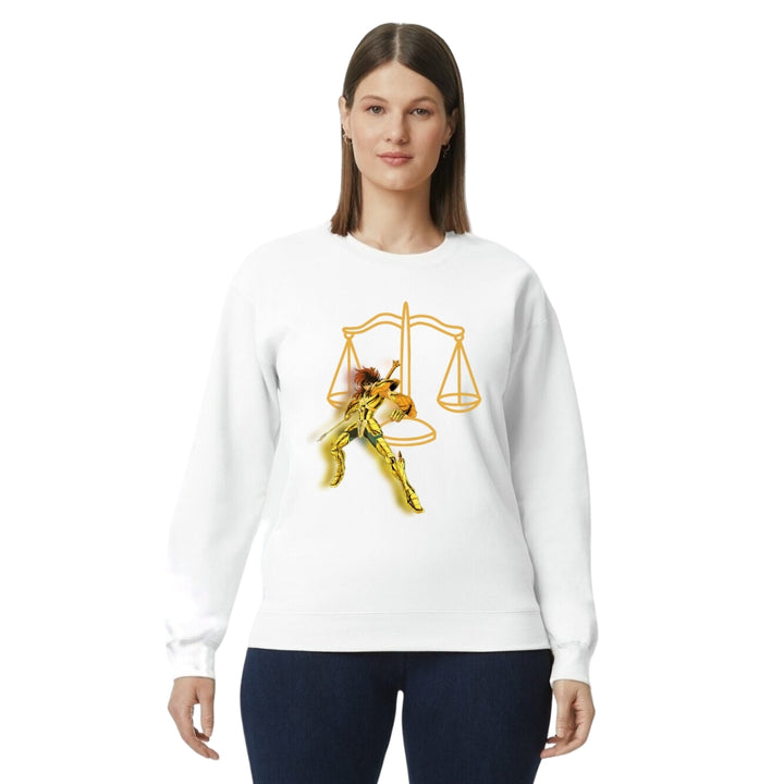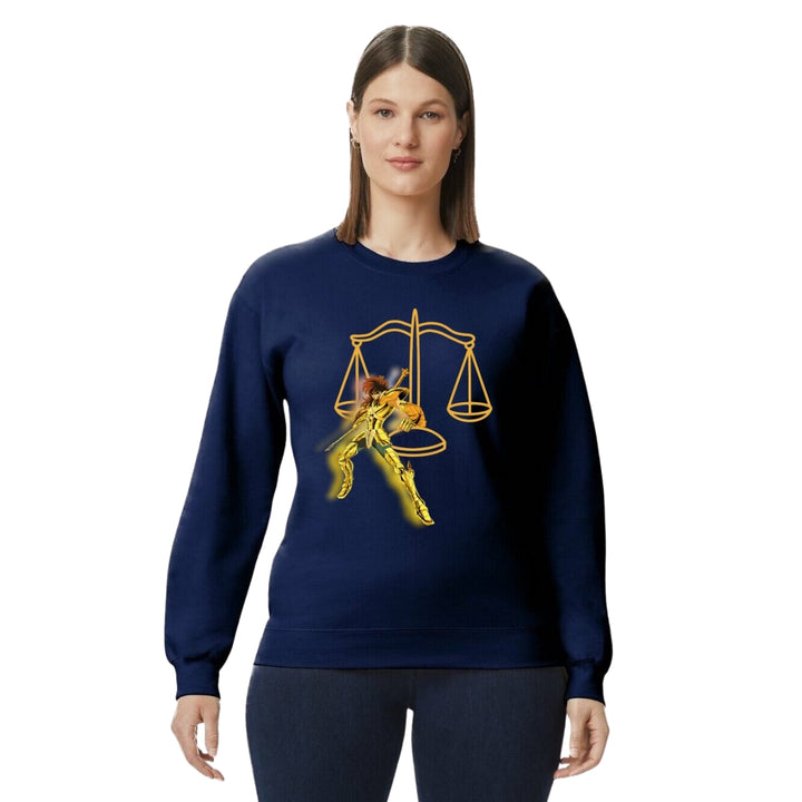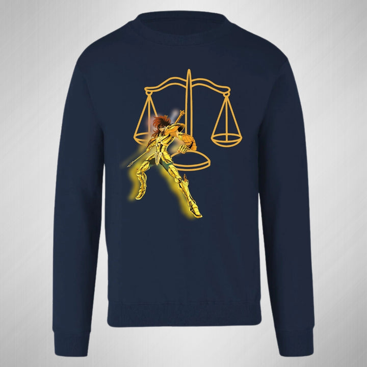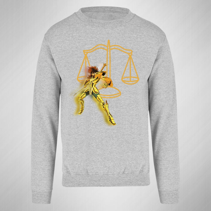 Sudadera de adulto cuello redondo sin gorro o capucha, para mujer nueva, diseño Saint Seiya Dohko de Libra original impreso con tecnología DTG (directo a la prenda) tacto cero, uso casual o deportiva, 50% algodón y 50% poliéster, estructura sin costura en los costados con ajuste clásico. Colores de sudadera: Negro, Blanco, Azul Marino, Gris.