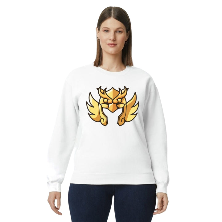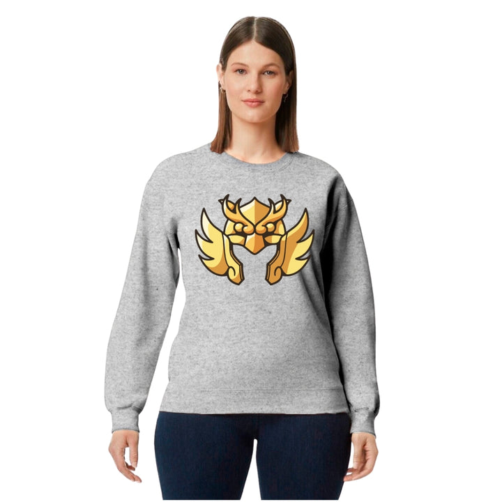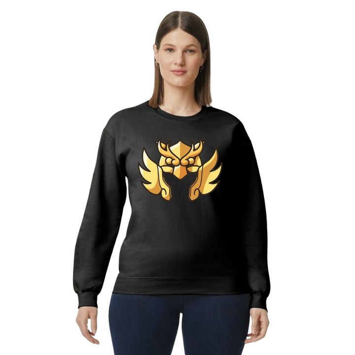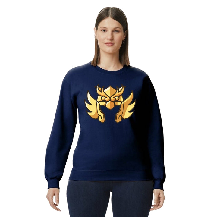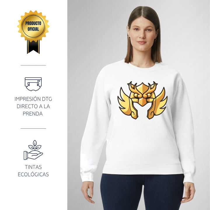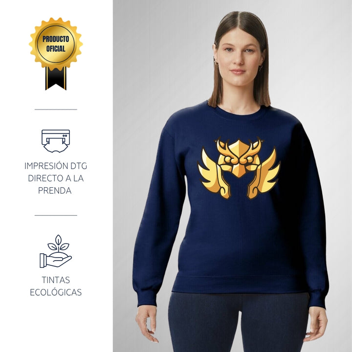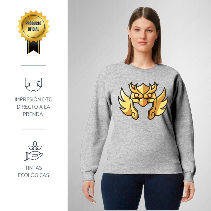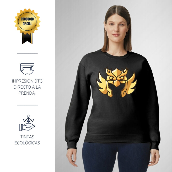 Sudadera de adulto cuello redondo sin gorro o capucha, para mujer nueva, diseño Saint Seiya Libra original impreso con tecnología DTG (directo a la prenda) tacto cero, uso casual o deportiva, 50% algodón y 50% poliéster, estructura sin costura en los costados con ajuste clásico. Colores de sudadera: Negro, Blanco, Azul Marino, Gris.