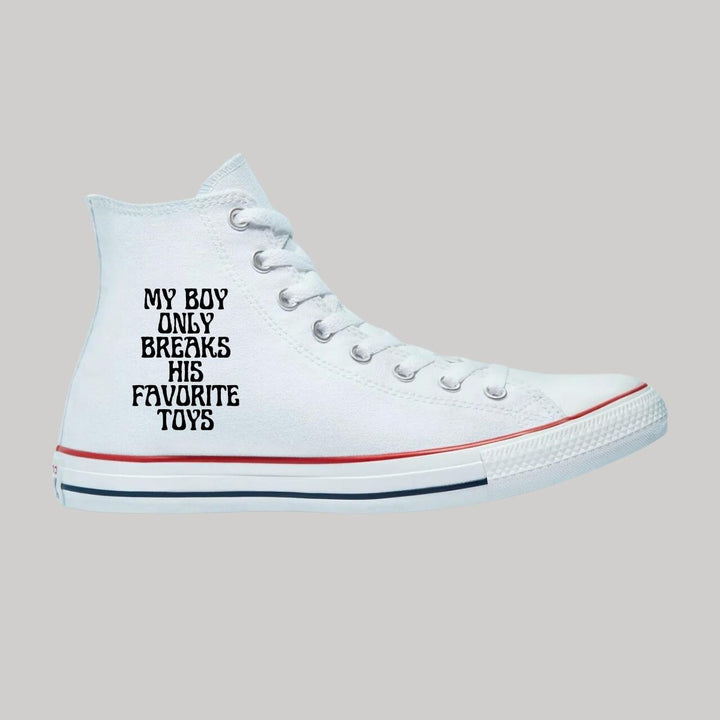 - ORIGINALIDAD Y SOSTENIBILIDAD: Tenis Converse Chuck Taylor All-Star de bota originales, nuevos con diseño Taylor Swift His favorite toys impreso con tecnología DTG (directo a la prenda) tacto cero. Se utilizan tintas ecológicas sin contaminantes que se adhieren a las fibras de la prenda, garantizando calidad, colores vivos e imagen de larga duración en el tenis sin comprometer el planeta.
